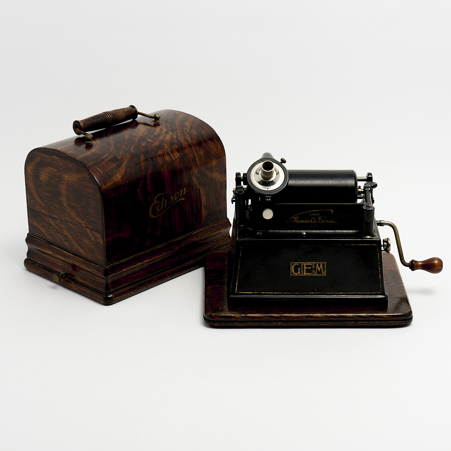 AN EARLY 20TH CENTURY THOMAS EDISON GEM PHONOGRAPH IN ORIGINAL WOODEN CASE H.20.5CM, LEONARD JOEL DELIVERY SIZE: MEDIUM