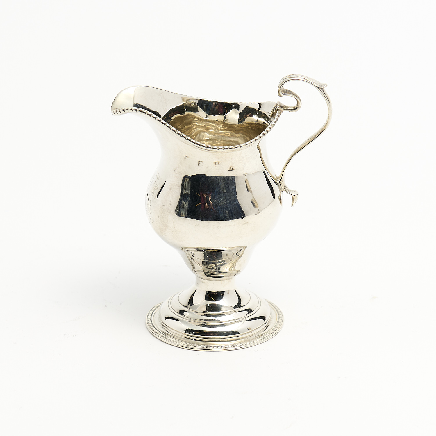 A GEORGIAN HALLMARKED STERLING SILVER HELMET SHAPE JUG WITH ARMORIAL CREST TO FRONT W.108G H.11CM, LEONARD JOEL DELIVERY SIZE: SMALL