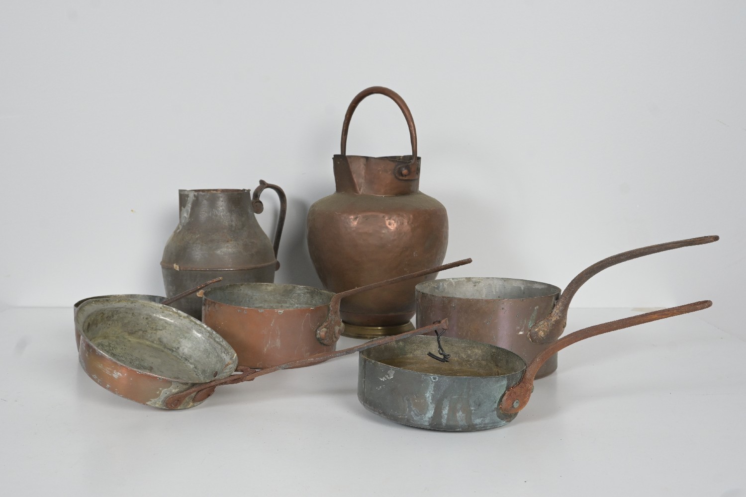 A COLLECTION OF COPPER ITEMS (A/F) (37H X 22DIA CM) (LEONARD JOEL DELIVERY: LARGE)
