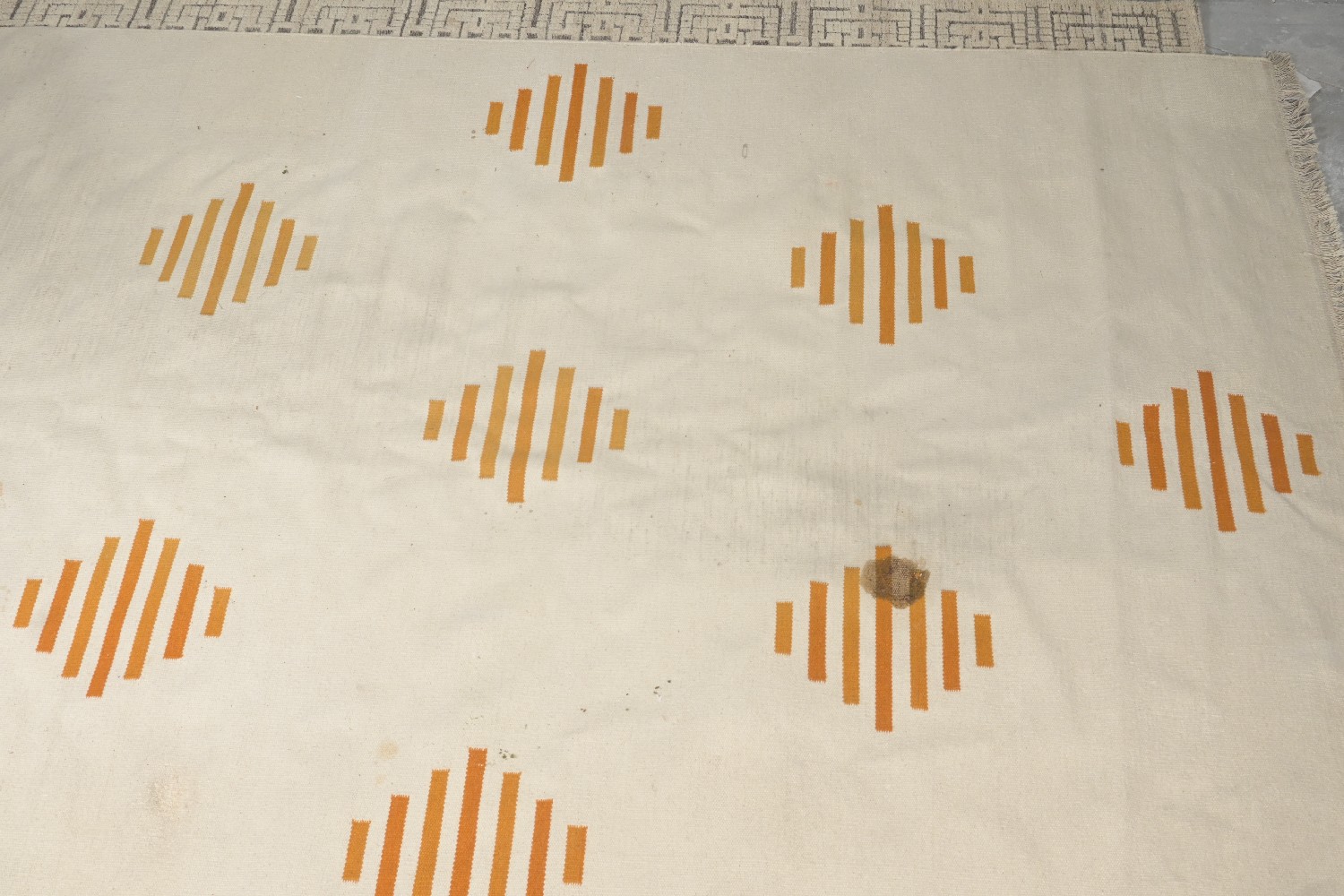 A DANISH WOOLEN FLOOR RUG (A/F) (348 X 239W CM) (LEONARD JOEL DELIVERY: X-LARGE)