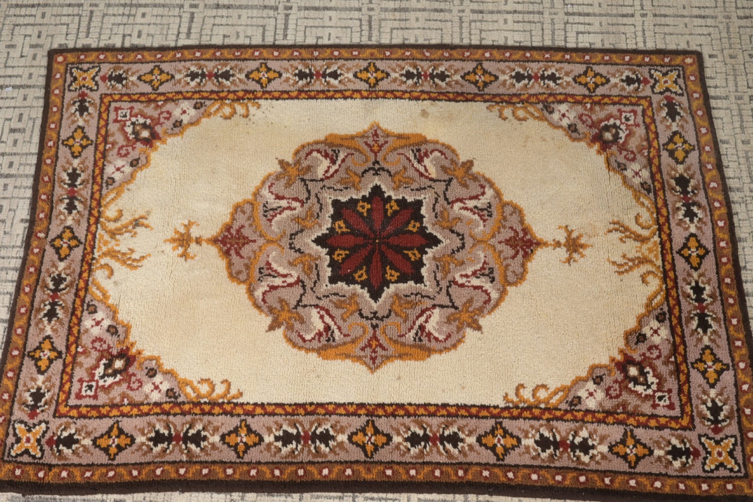 A LARGE DANISH WOOLEN RUG IN GEOMETRIC DESIGN (220 X 151W CM) (LEONARD JOEL DELIVERY: LARGE)