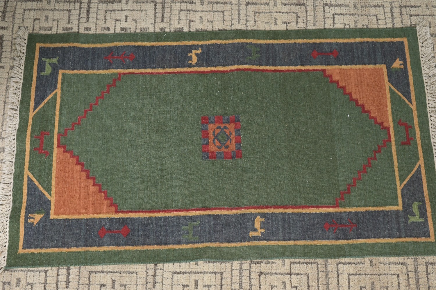 A DANISH FLAT WEAVE RUG IN MULTI COLOURED TONES (160 X 93 CM) (LEONARD JOEL DELIVERY: LARGE)