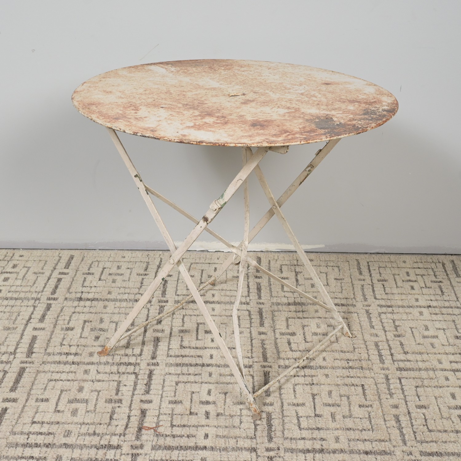 A VINTAGE METAL OUTDOOR TABLE (A/F) (72H X 79DIA CM) (LEONARD JOEL DELIVERY: LARGE)