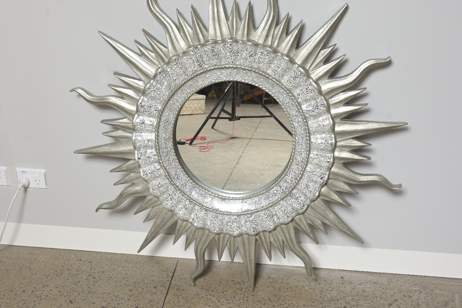 A STARBURST WALL MIRROR IN SILVERED FINISH (114 CM DIA) (LEONARD JOEL DELIVERY: X-LARGE)
