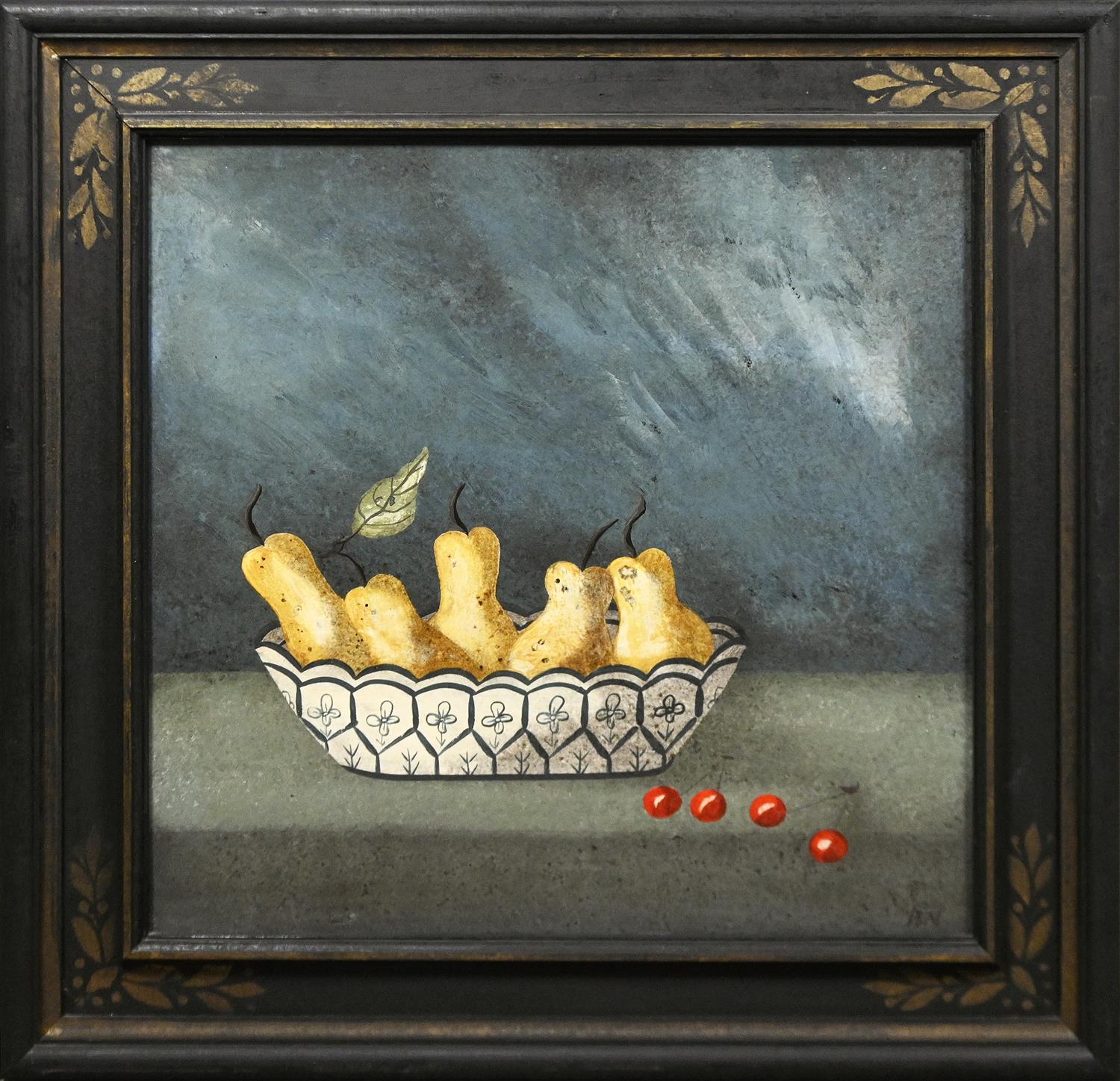 SIGNED A.W., (STILL LIFE WITH PEARS AND CHERRIES), OIL ON BOARD, INITIALLED LOWER RIGHT, 61 X 60CM, FRAME SIZE: 82 X 82CM Provenance: Private Collection, Toorak