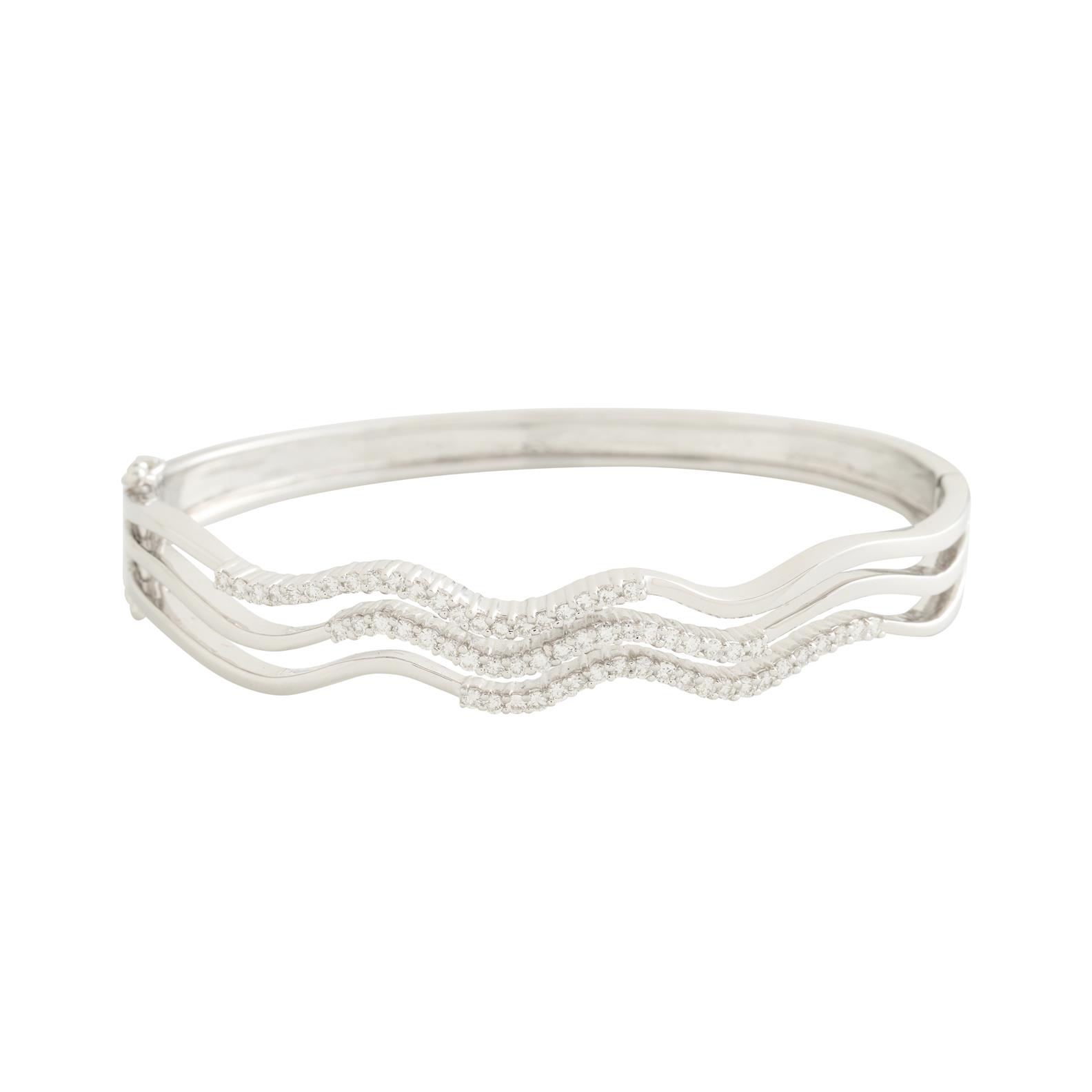 A DIAMOND SET BANGLE IN 18CT WHITE GOLD, THE INNER DIAMETER 54MM X 45MM, 21.5GMS