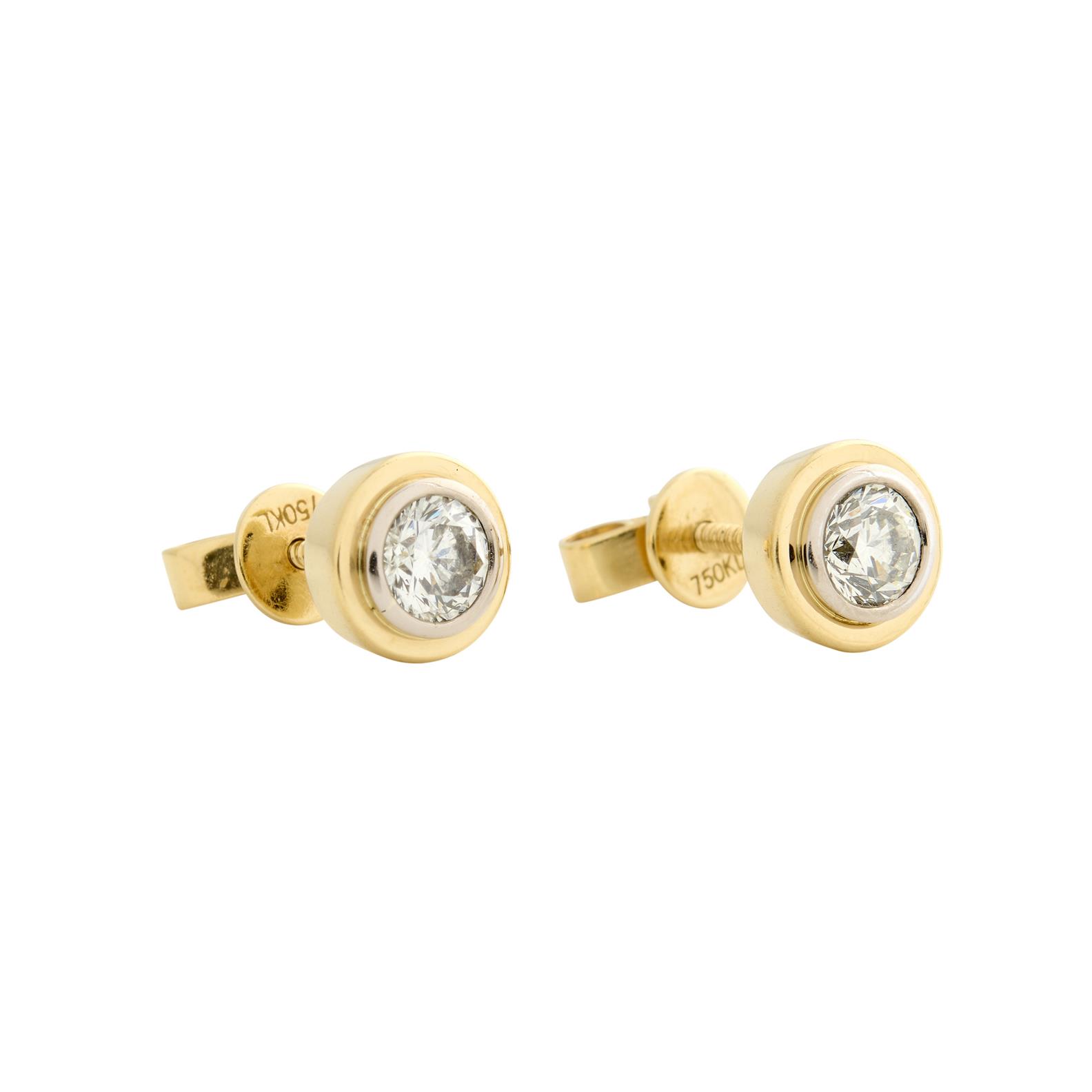 Each centring a collet-set brilliant-cut diamond together weighing approximately 0.72 carats, mounted in 18ct gold, post and scroll fittings, gross weight approximately 3.2 grams.