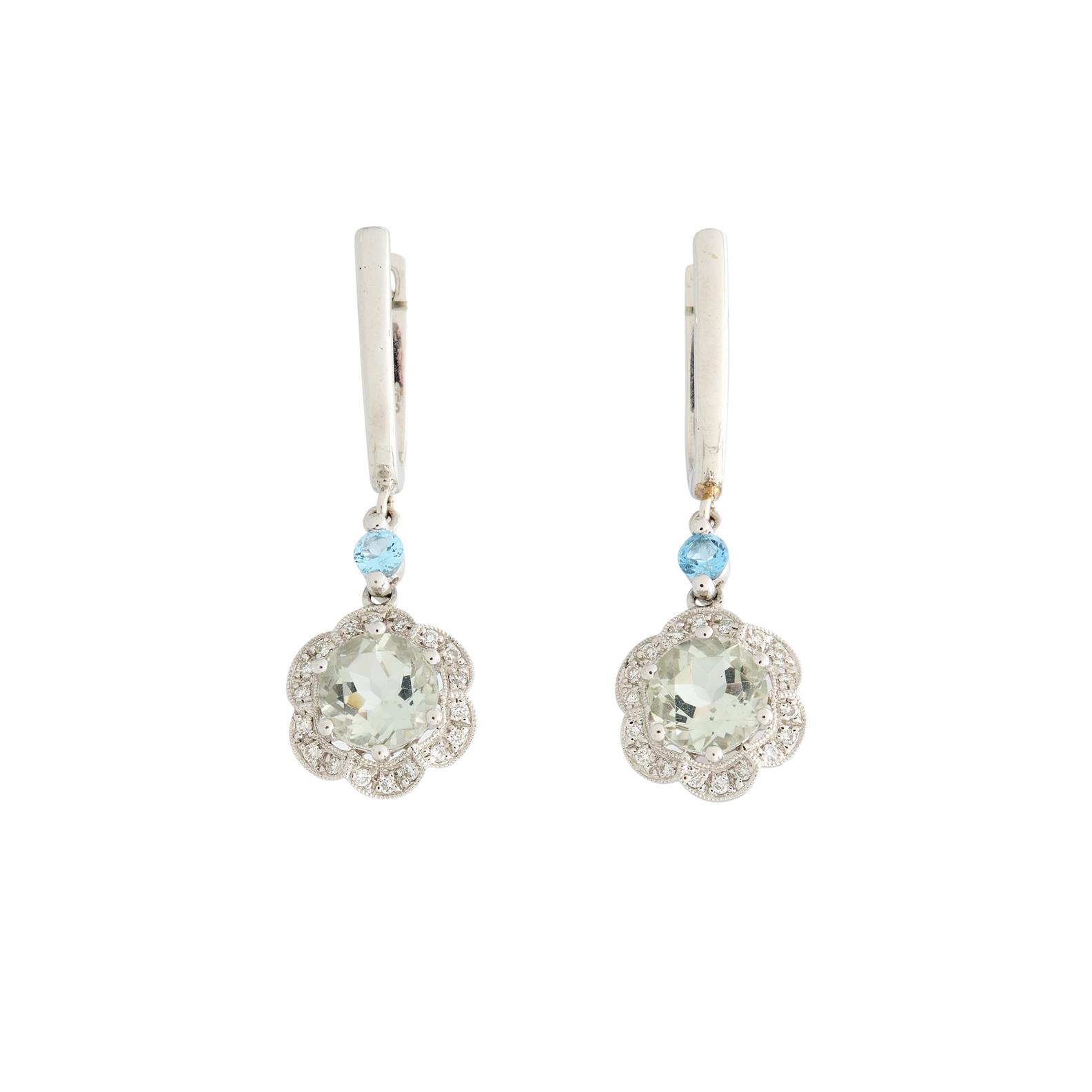 PAIR OF AQUAMARINE, TOPAZ AND DIAMOND EARRINGS