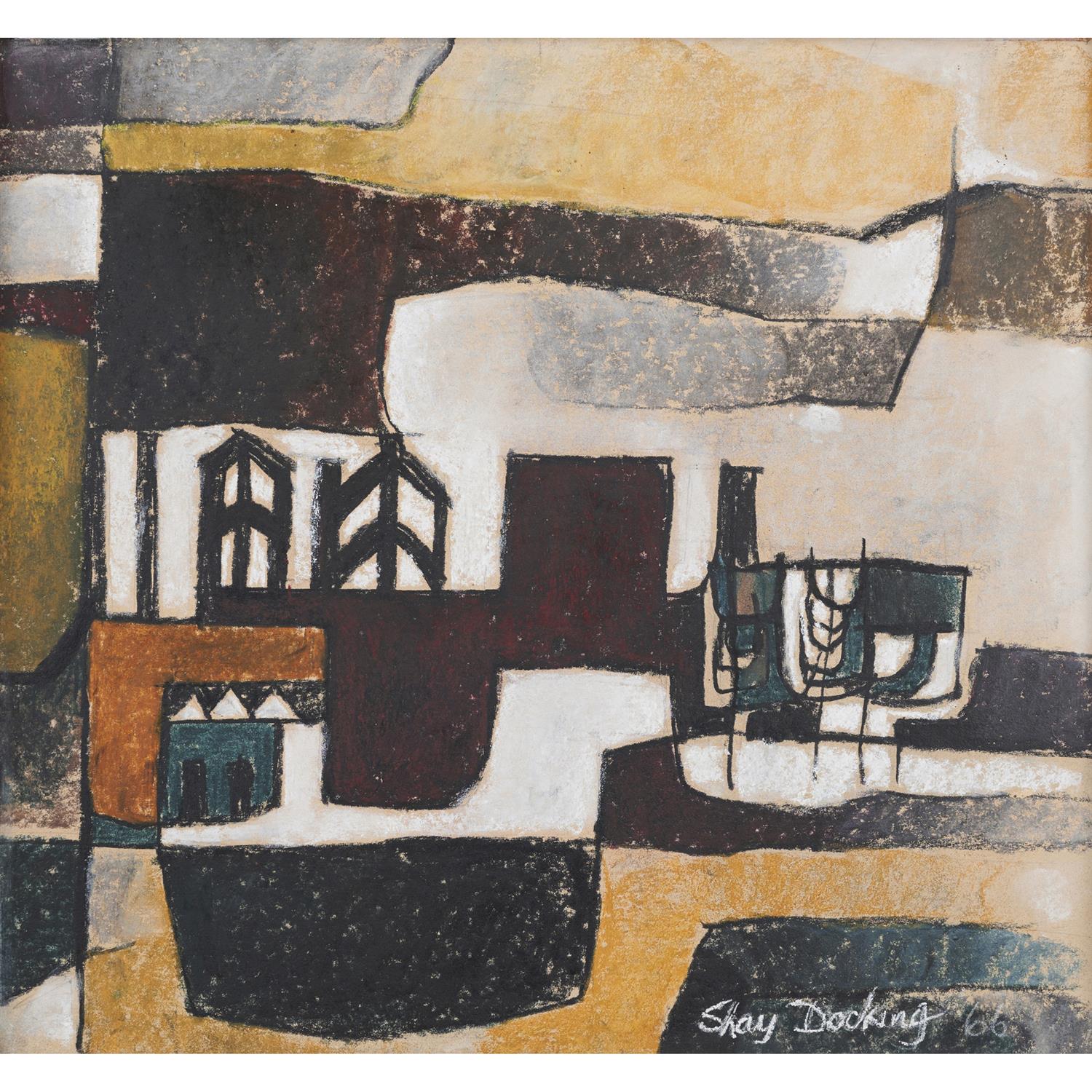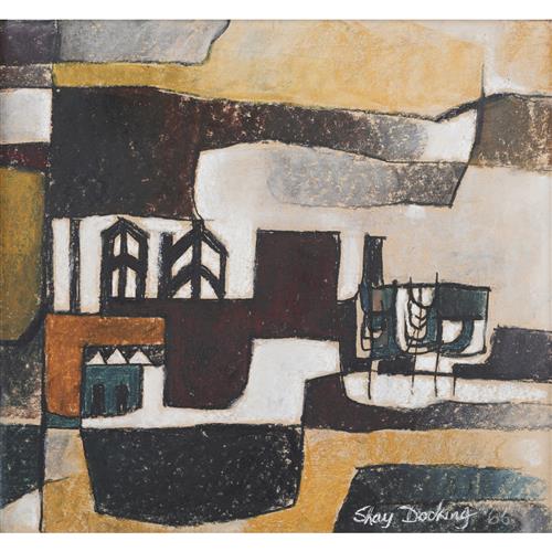 PAM HALLANDAL (1929-2018) Shopping Plaza 1991 charcoal, pastel and ink on paper 173 x 31.5cm