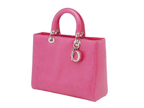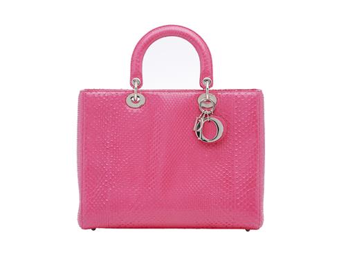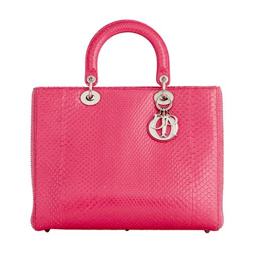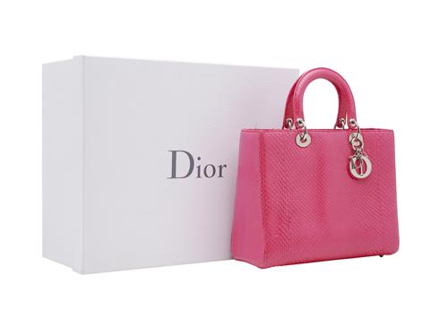 Styled in pink snakeskin, with silver tone hardware and optional shoulder strap, 25 x 33 x 11cm.
