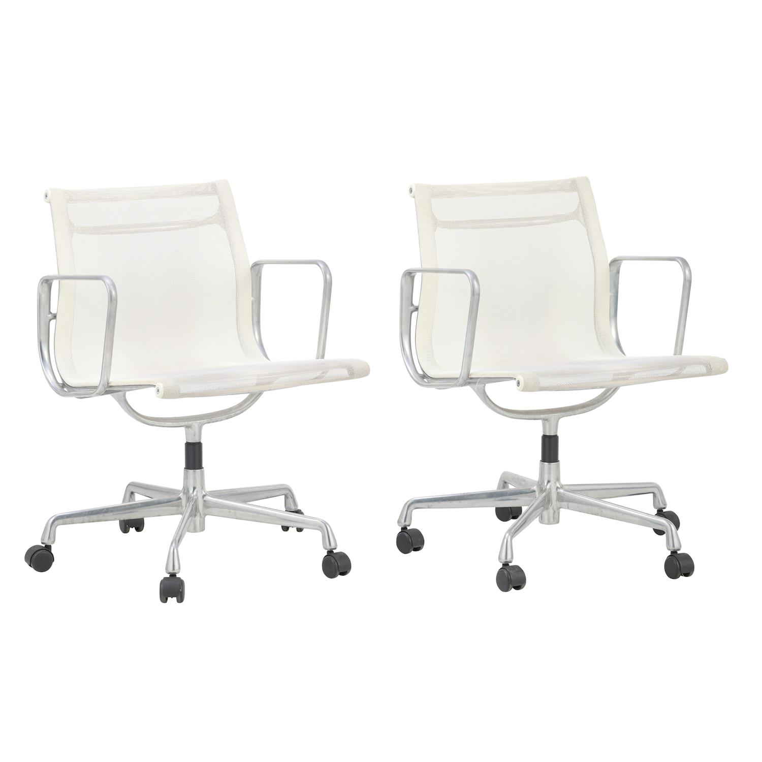 Vitra stickers present to underside. Structurally sound. Discolouration to seats from fabric dye transfer from clothing to white mesh.