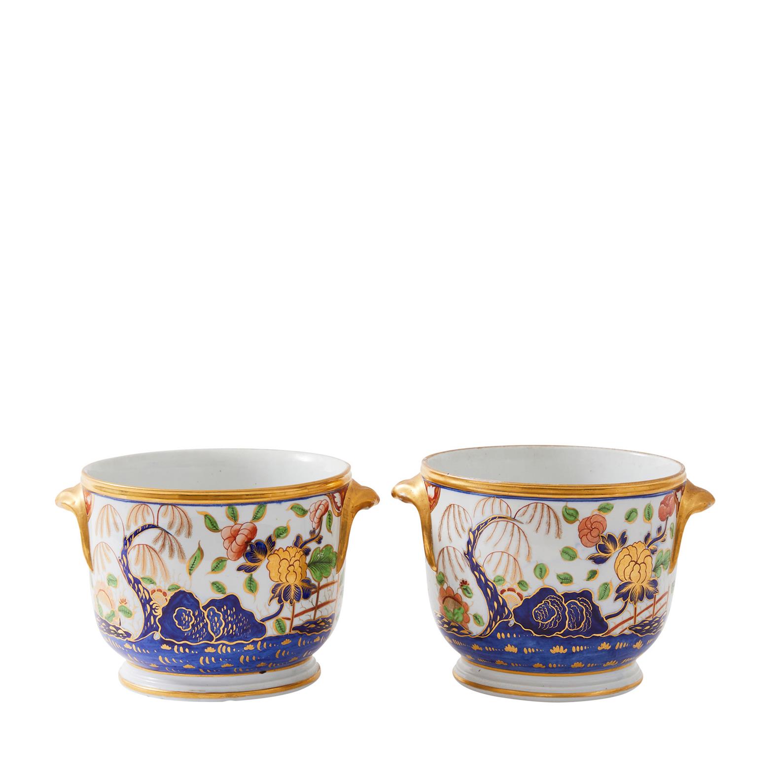 Early 19th century, probably Coalport in the 'Imari Rock and Tree pattern'.