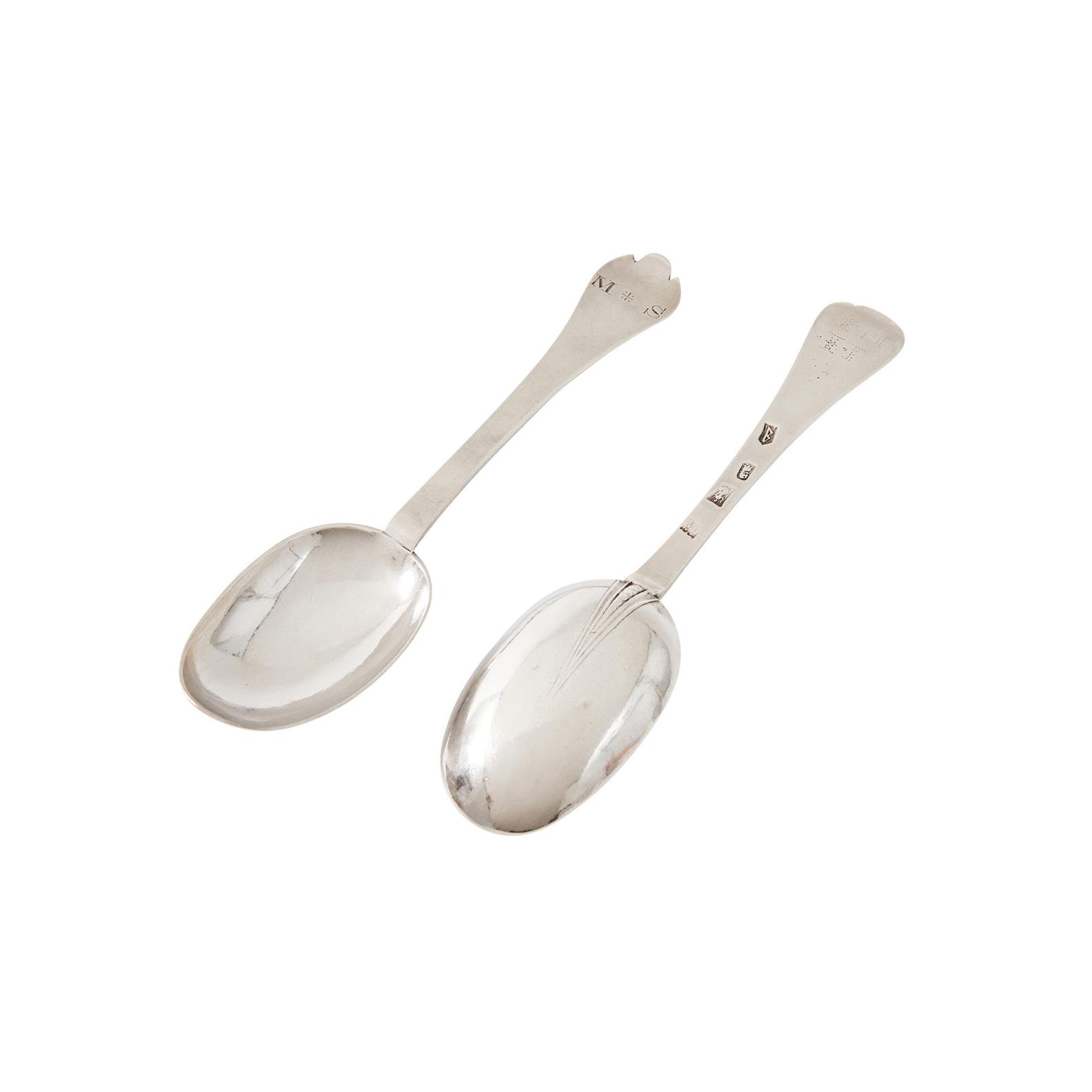 A PAIR OF WILLIAM III SILVER TREFID SPOONS