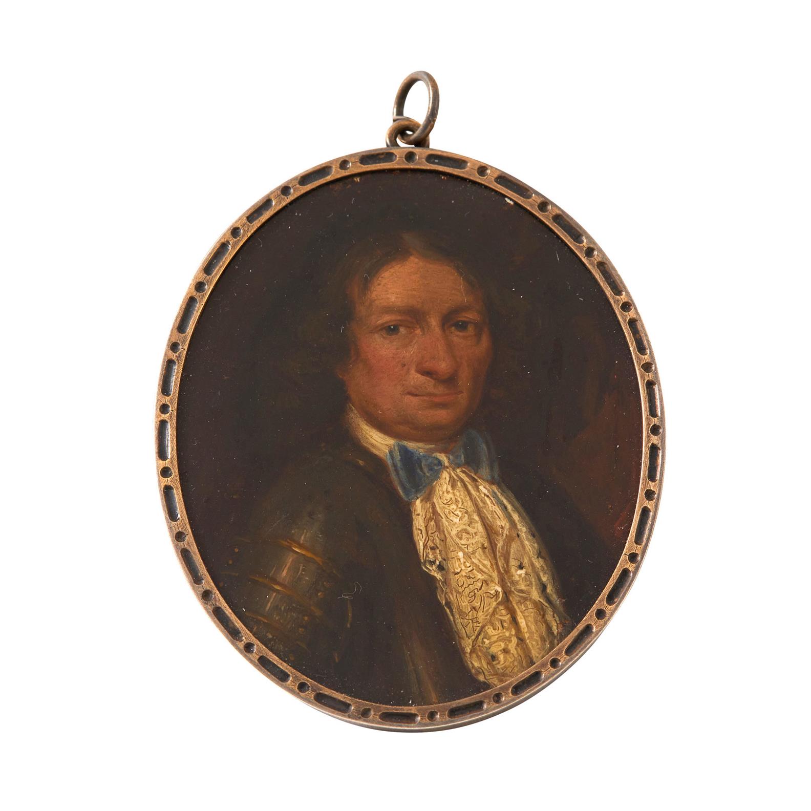 Portrait of a Gentleman, wearing armour and a white lace jabot with blue bow