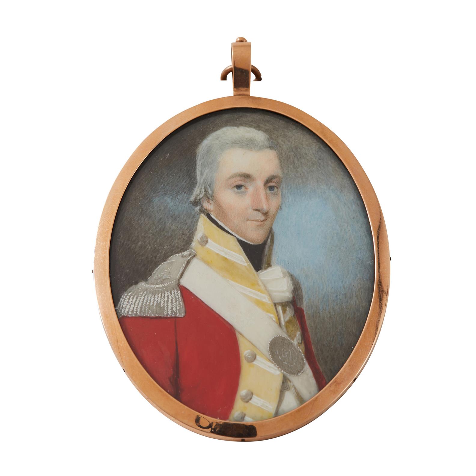 An Officer of the 67th Regiment of Foot, in a red coat with yellow facings and silver lace and epaulettes