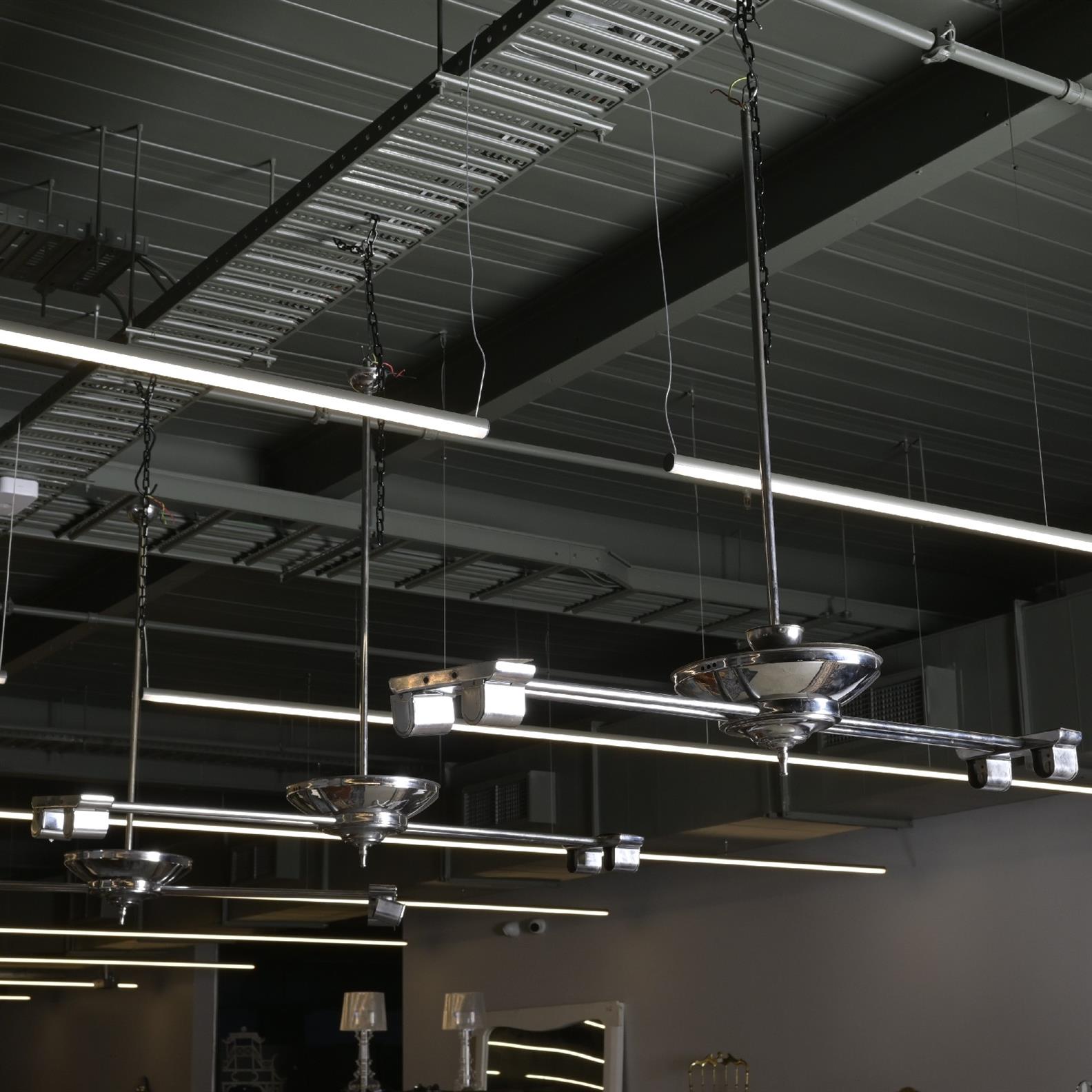 A COLLECTION OF TEN ART DECO CHROME LIGHTS (A/F) (05H X 130W X 32D CM) (THIS HEAVY ITEM MUST BE REMOVED BY CARRIERS AT THE CUSTOMER'S EXPENSE. LEONARD JOEL STAFF CANNOT ASSIST CARRYING THIS ITEM)