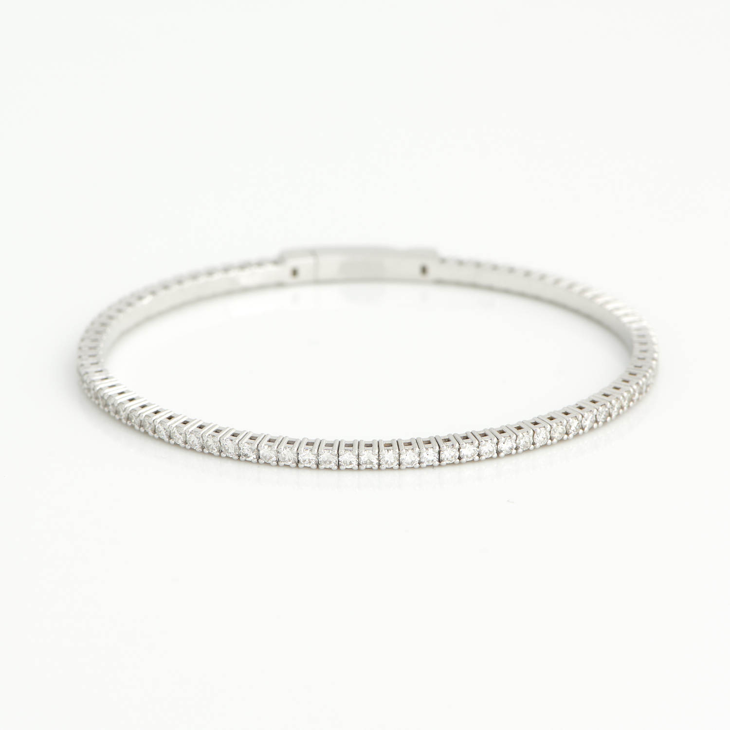 A DIAMOND BANGLE IN 18CT WHITE GOLD, THE DIAMONDS TOTALLING 2.88CTS (G/SI), INNER DIAMETER 550MM, 11.6GMS
