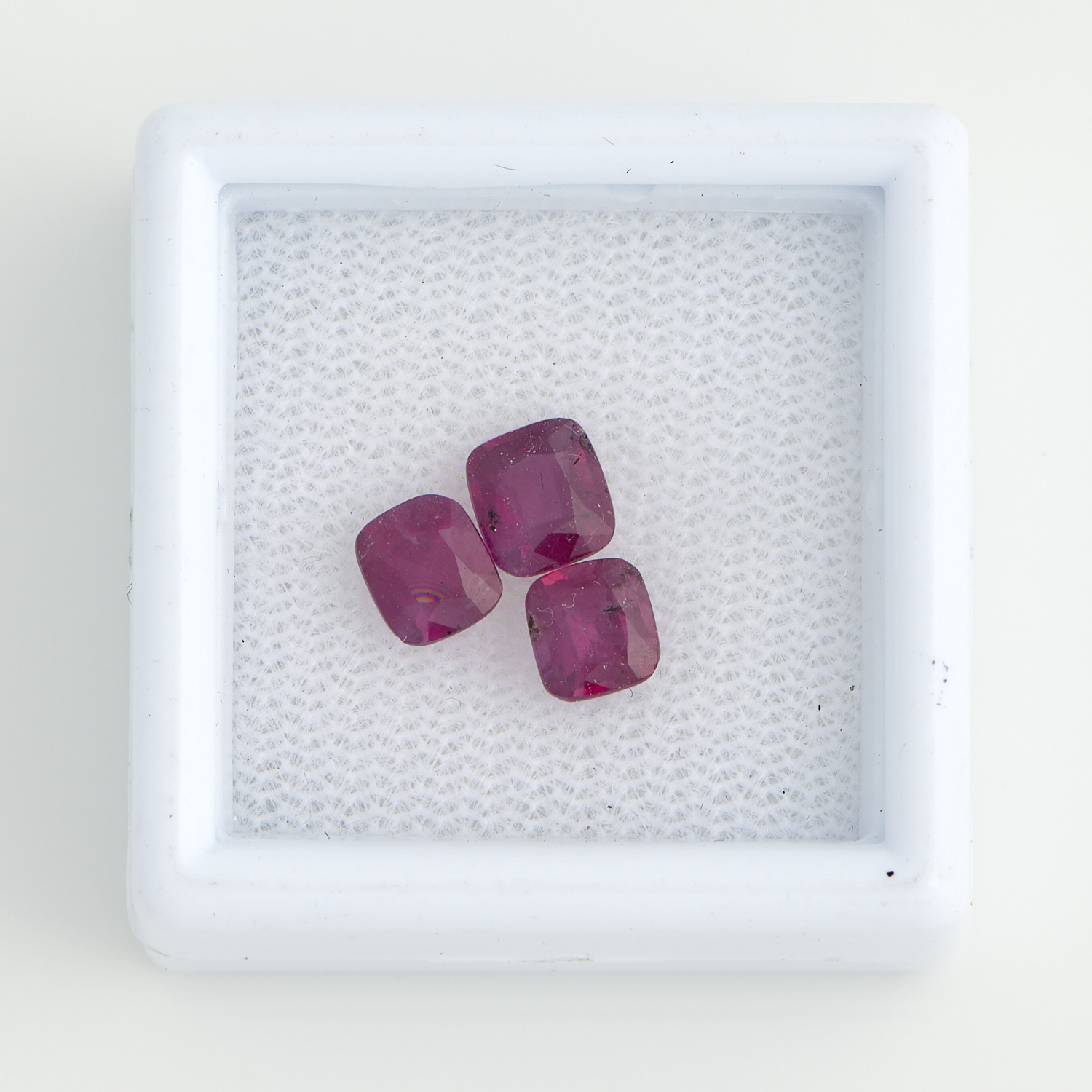 A COLLECTION OF THREE UNMOUNTED CUSHION-CUT UNHEATED MOZAMBIQUE RUBIES TOTALLING 1.98CTS, ACCOMPANIED BY A GEMSTONE CERTIFICATE