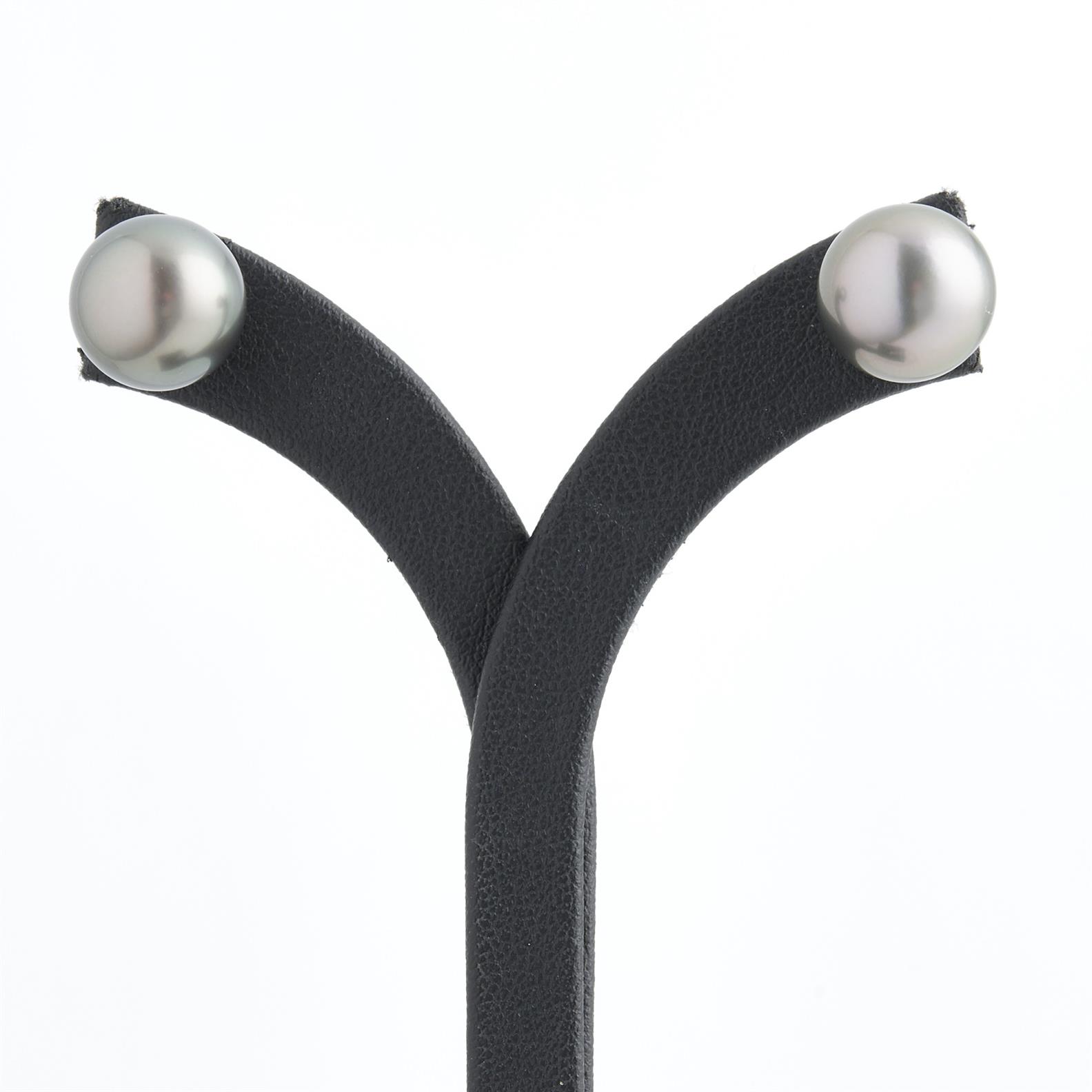 A PAIR OF TAHITIAN PEARL EARRINGS IN 14CT GOLD, THE PEARLS MEASURING 11.2MM, TO POST AND BUTTERFLY FITTINGS
