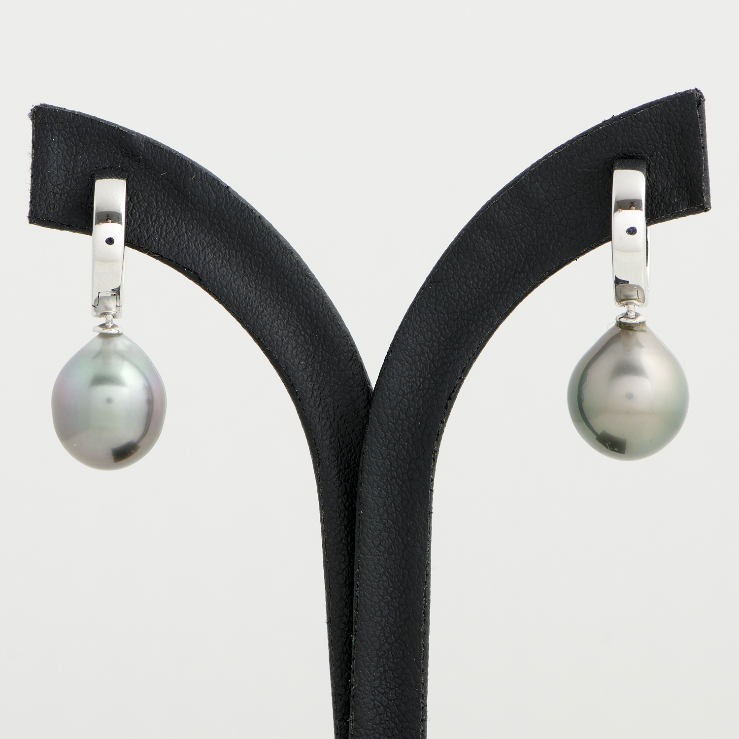 A PAIR OF TAHITIAN PEARL EARRINGS IN 9CT WHITE GOLD, THE PEARLS MEASURING APPROXIMATELY 11.5MM X 13MM