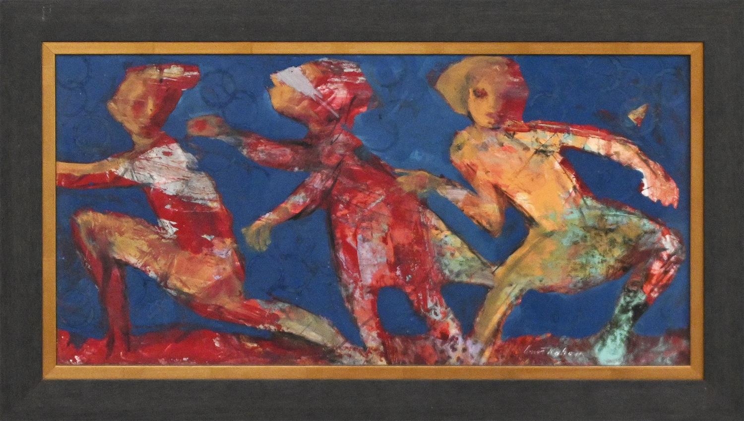 LOUIS KAHAN, (THREE FIGURES), OIL ON BOARD, SIGNED LOWER RIGHT, 29 X 60CM, FRAME SIZE: 40 X 70CM