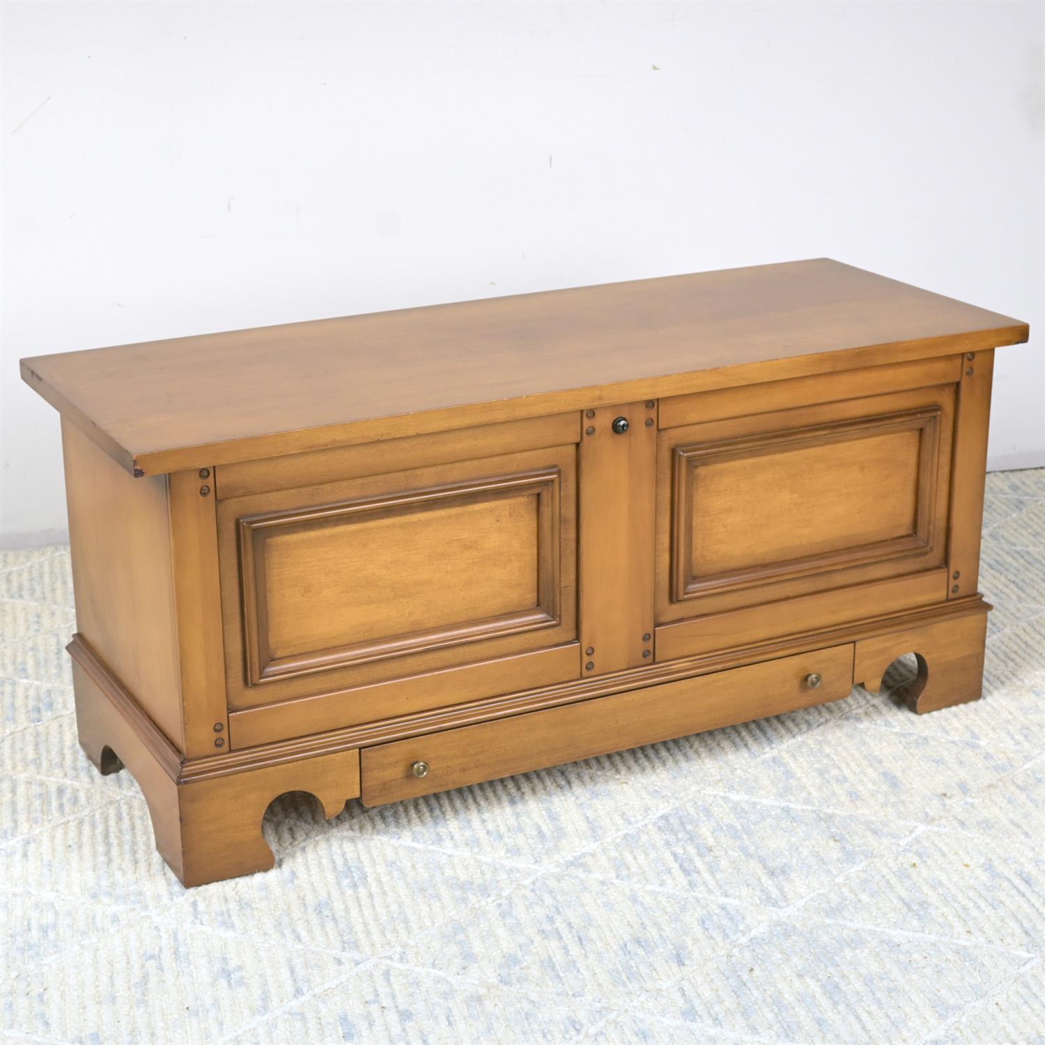 AN AMERICAN GEORGIAN-STYLE CHEST, FITTED WITH A TRAY TO THE INTERIOR (51H X 115W X 43D CM) (LEONARD JOEL DELIVERY: X-LARGE)