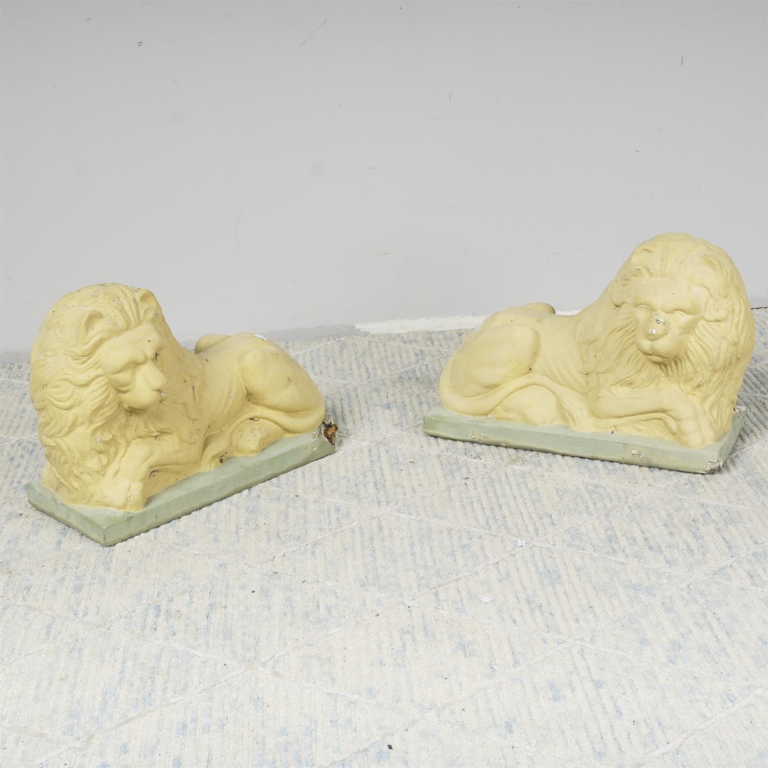 A PAIR OF CONCRETE LION STATUES (A/F) (43H X 55W X 24D CM) (THIS HEAVY ITEM MUST BE REMOVED BY CARRIERS AT THE CUSTOMER'S EXPENSE. LEONARD JOEL STAFF CANNOT ASSIST CARRYING THIS ITEM)
