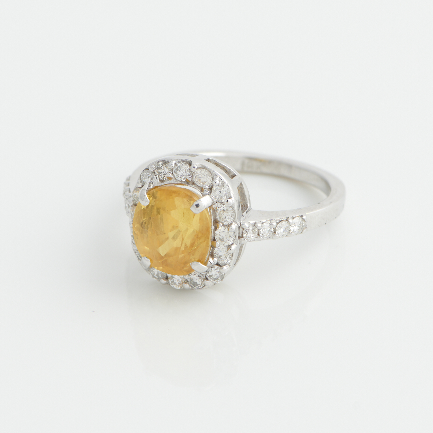 A SAPPHIRE AND DIAMOND RING IN 18CT WHITE GOLD, THE SAPPHIRE WEIGHING 3.62CTS, THE DIAMONDS TOTALLING 0.78CT (G/VS), SIZE M