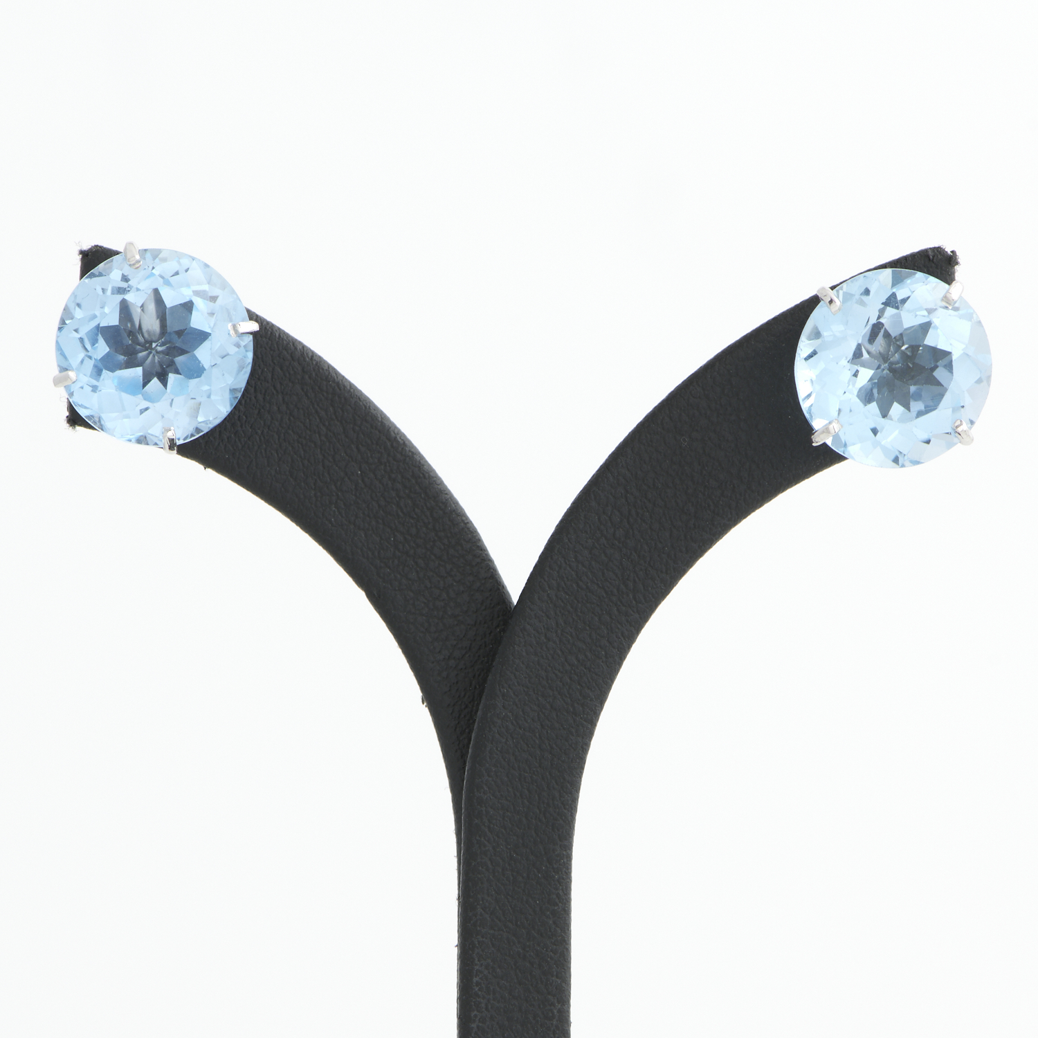 A PAIR OF TOPAZ EARRINGS IN 18CT WHITE GOLD, THE TOPAZ TOTALLING 19.35CTS, TO POST AND BUTTERFLY FITTINGS, DIAMETER 12MM