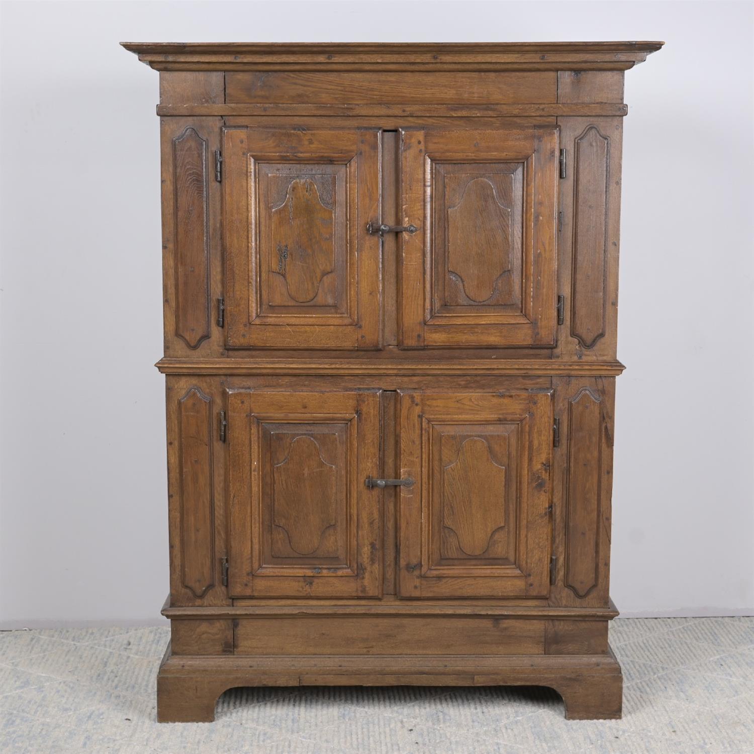 AN 18TH CENTURY FLEMISH OAK CABINET (A/F) (177H X 134W X 54D CM)  (THIS HEAVY ITEM MUST BE REMOVED BY CARRIERS AT THE CUSTOMER'S EXPENSE. LEONARD JOEL STAFF CANNOT ASSIST CARRYING THIS ITEM)