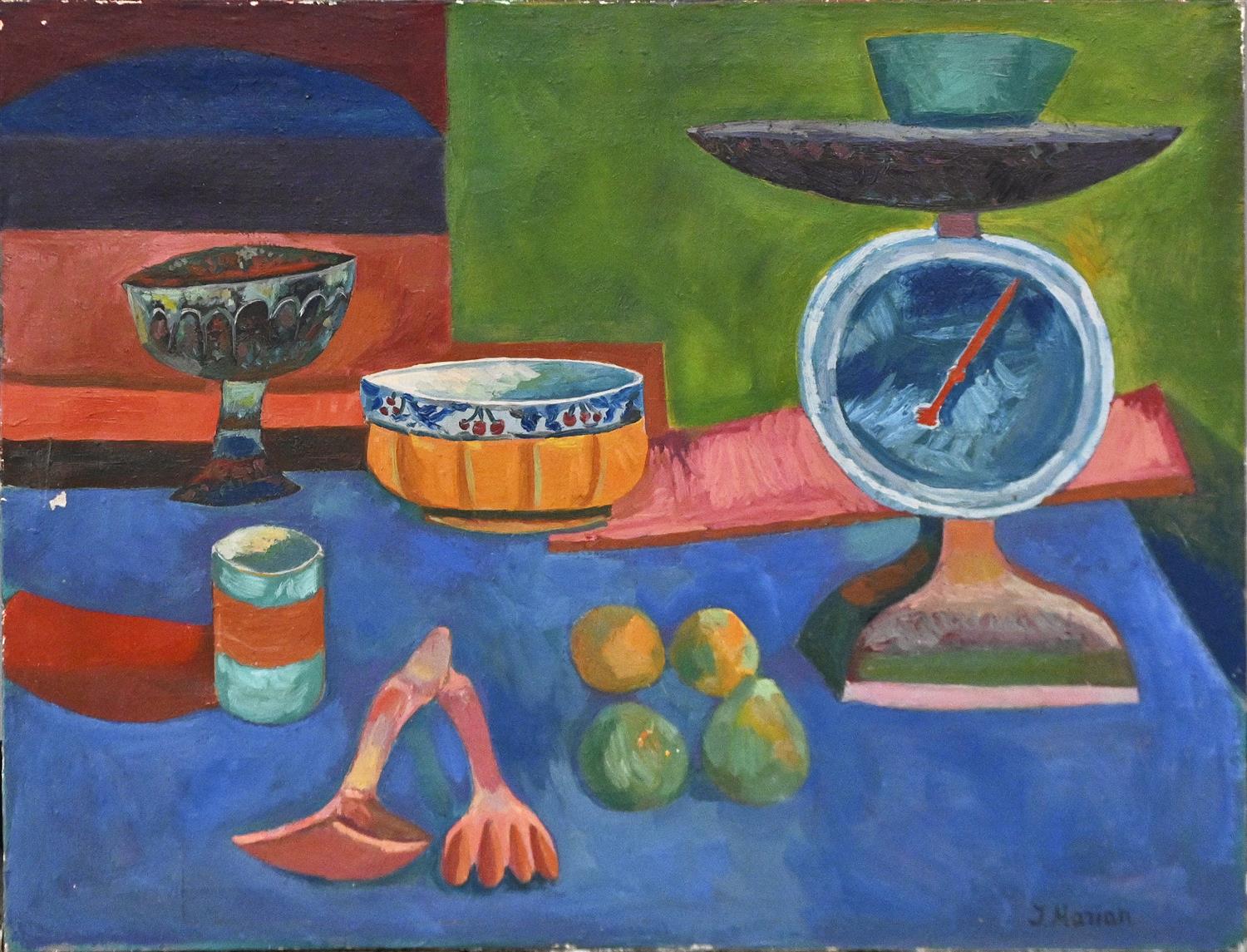 JAN MARIAN KOSCIALKOWSKI, (STILL LIFE WITH SCALE), OIL ON CANVAS, SIGNED LOWER RIGHT, 72.5 X 93.5CM