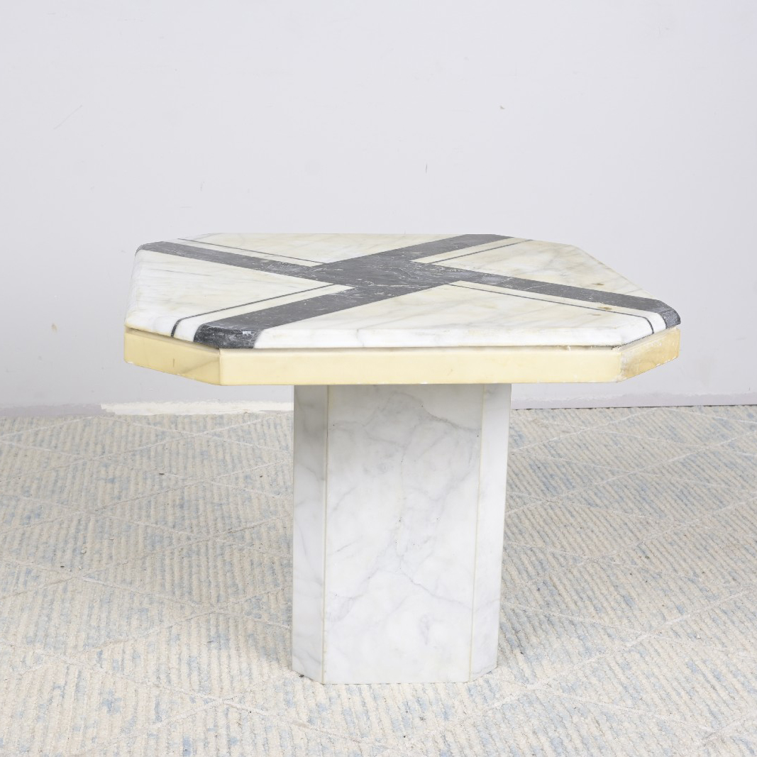 A 1980'S ITALIAN MARBLE COFFE TABLE (A/F) (59H X 72W X 72D CM) (THIS HEAVY ITEM MUST BE REMOVED BY CARRIERS AT THE CUSTOMER'S EXPENSE. LEONARD JOEL STAFF CANNOT ASSIST CARRYING THIS ITEM)