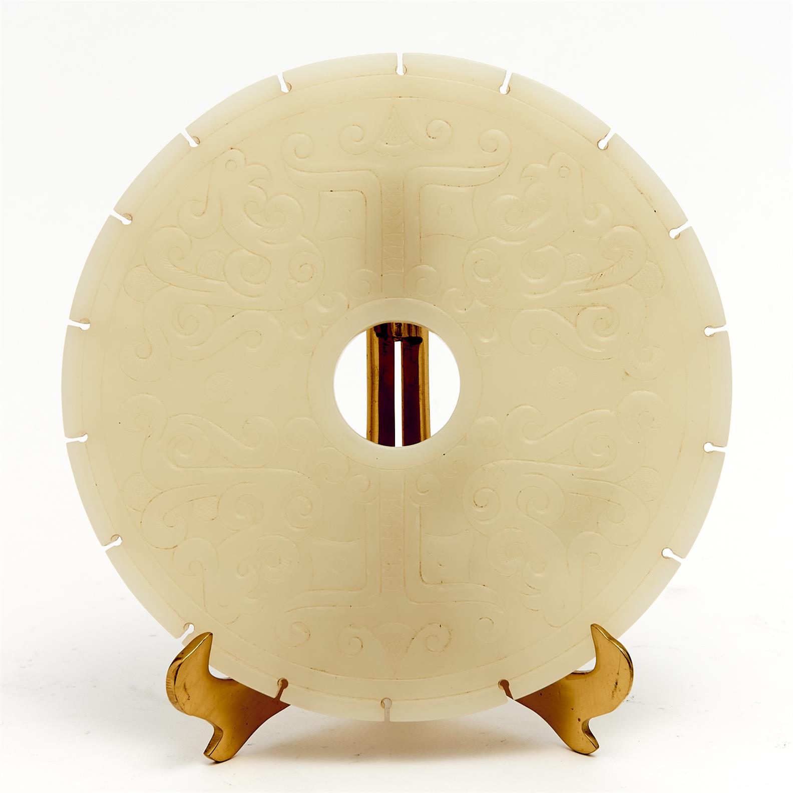A CHINESE DECORATED AFGHAN WHITE JADE PLAQUE DIA.17CM, LEONARD JOEL DELIVERY SIZE: SMALL