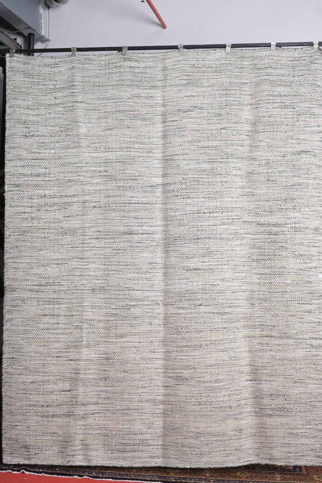 A NEW MODERN REVERSIBLE SCANDINAVIAN DESIGN RUG. HAND-WOVEN IN WOOL AND VISCOSE, IN GREEN AND IVORY TONES WITH A HINT OF CHARCOAL. ORIGIN: INDIA (244 X 305 CM) (LEONARD JOEL DELIVERY SIZE: X-LARGE)