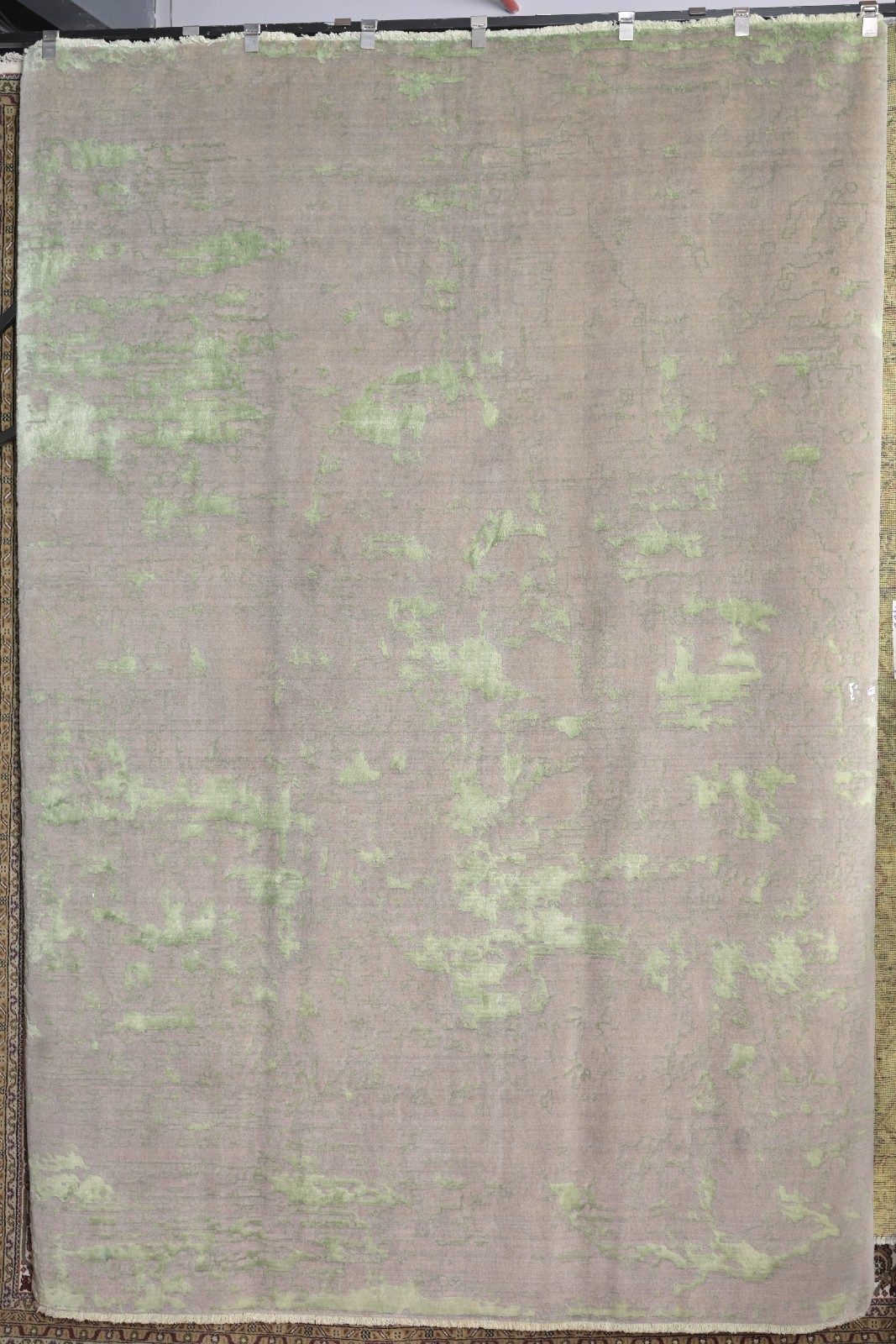 A NEW CONTEMPORARY GLACIER COLLECTION RUG. PLUSH WOOL PILE WITH SILKY VISCOSE ACCENTS. IN TONES OF GREY AND GARDEN GREEN. HAND-MADE LOOM KNOT. ORIGIN: PERSIA (294 X 203 CM) (LEONARD JOEL DELIVERY SIZE: X-LARGE)