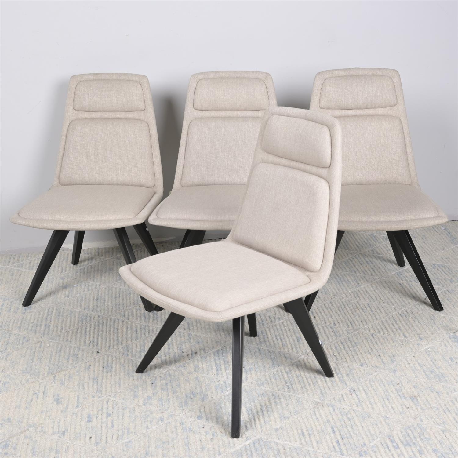 A SET OF FOUR UPHOLSTERED DINING CHAIRS (84H X 54W X 53D CM) (LEONARD JOEL DELIVERY: LARGE)