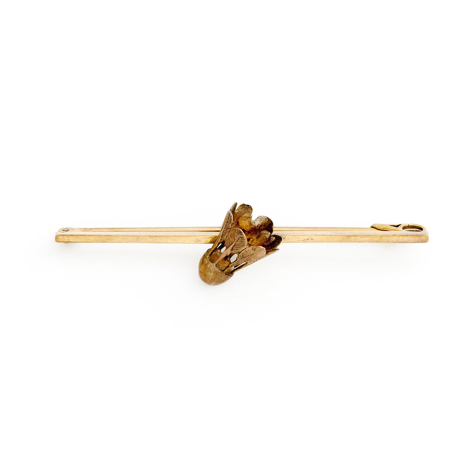 A SHUTTLECOCK BAR BROOCH IN 9CT GOLD, 50MM , 2.7GMS