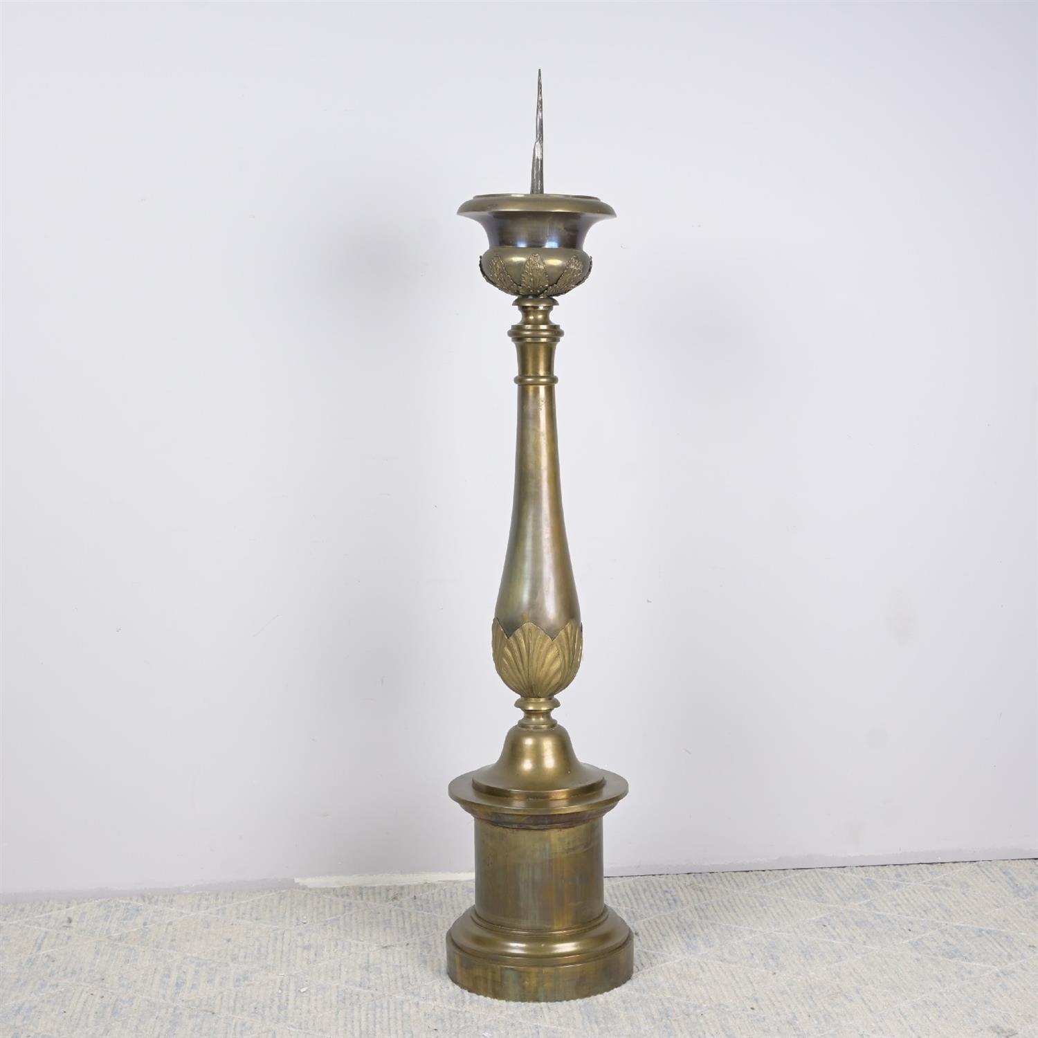 A VERY LARGE FLOOR-STANDING BRASS PRICKET CANDLESTICK (197H X 40DIA CM) (LEONARD JOEL DELIVERY: X-LARGE)