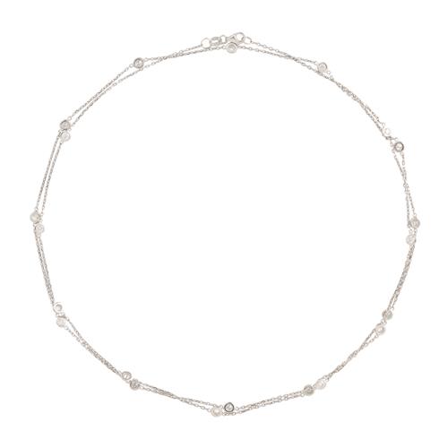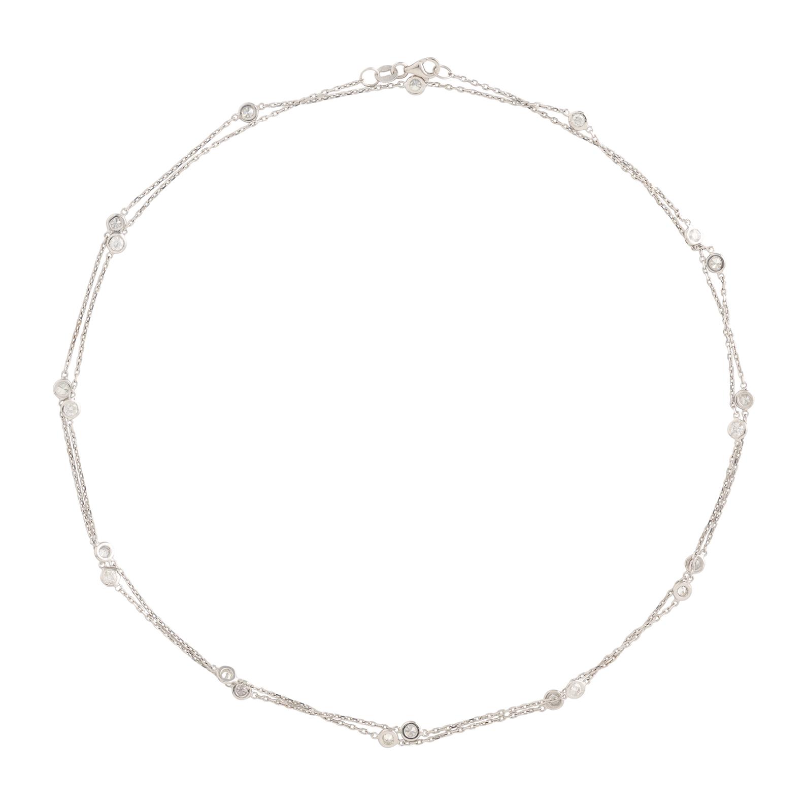 Composed as a trace chain decorated at intervals with twenty-one collet-set brilliant-cut diamonds, the diamonds together weighing approximately 2.40 carats, length approximately 880mm, gross weight approximately 7.5 grams.