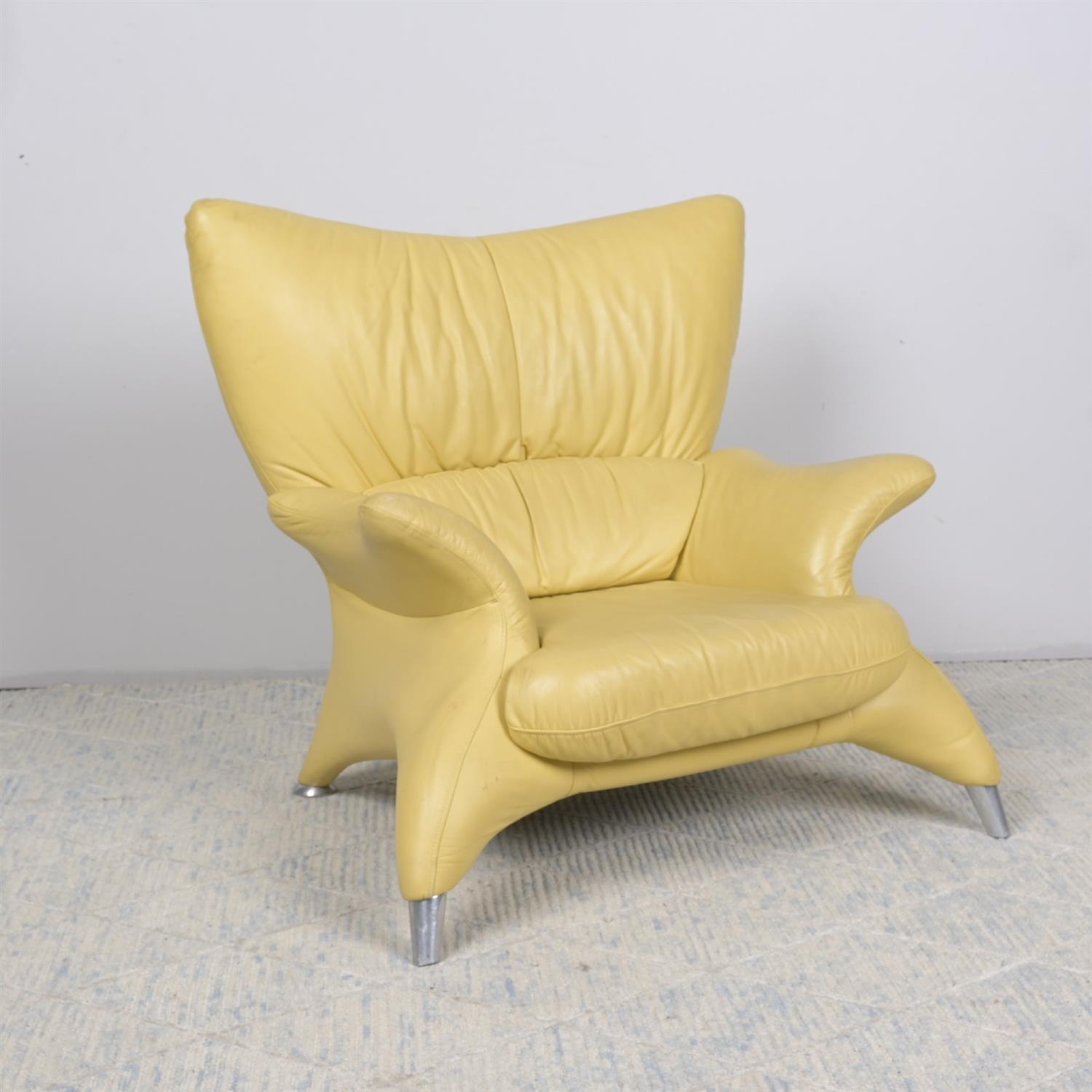 AN UNUSUAL LEATHER ARMCHAIR (107H X 105W X 86D CM) (LEONARD JOEL DELIVERY: X-LARGE)