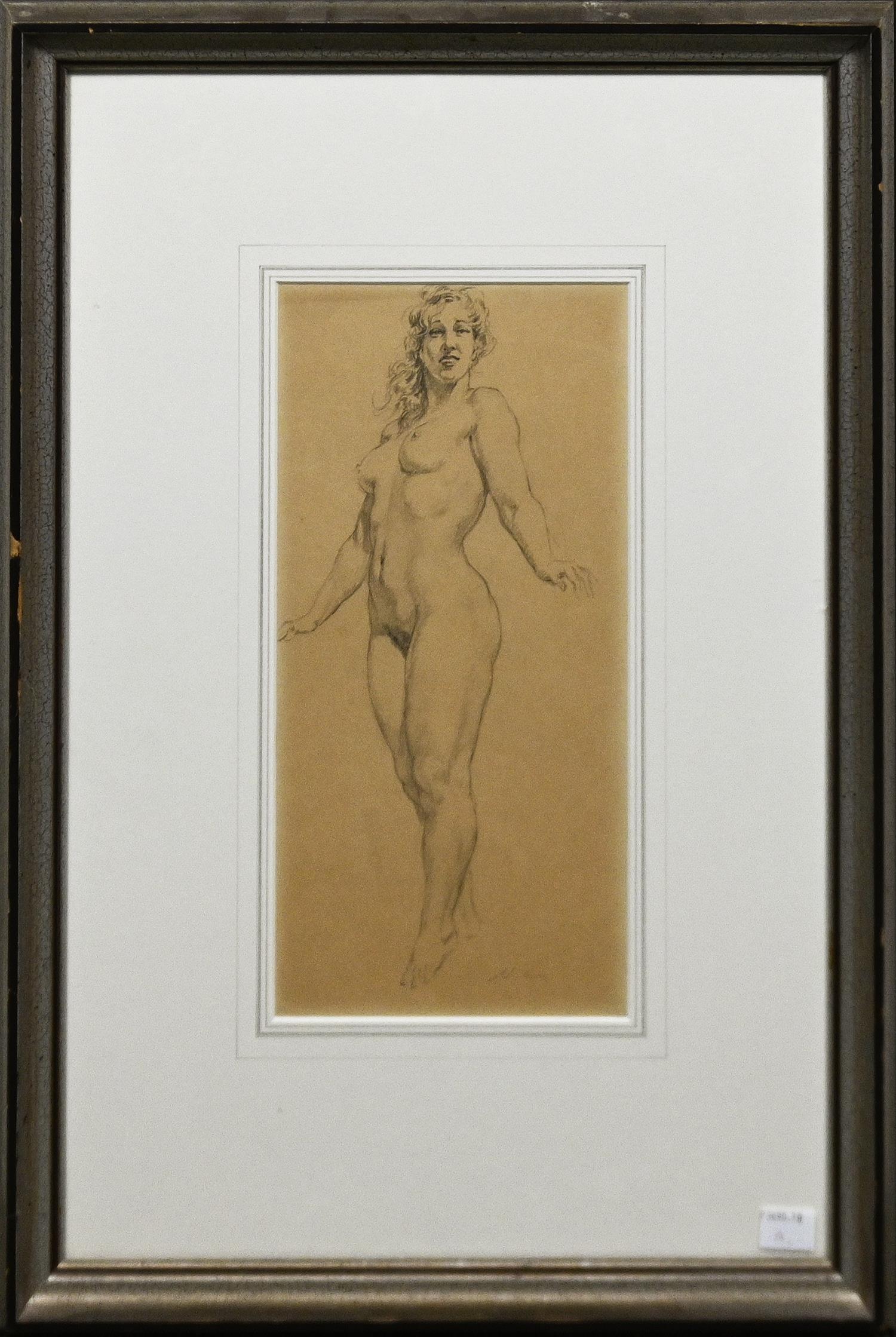 NORMAN LINDSAY, (FIGURE STUDY), PENCIL ON PAPER, INITIALLED LOWER LEFT, 30 X 15CM (REVEAL), FRAME SIZE: 54 X 38CM