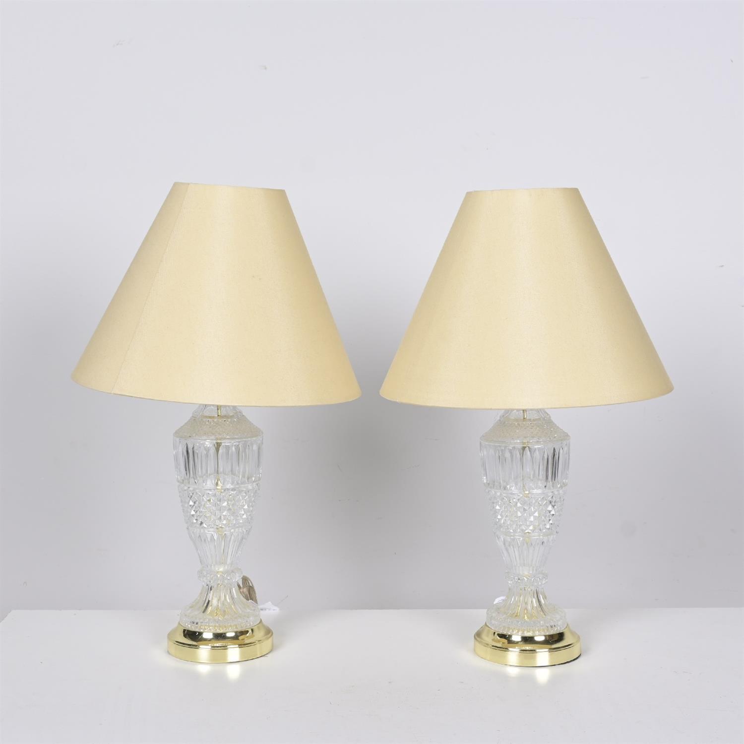A PAIR OF CUT GLASS TABLE LAMPS (64H X 40DIA CM) (LEONARD JOEL DELIVERY: LARGE)