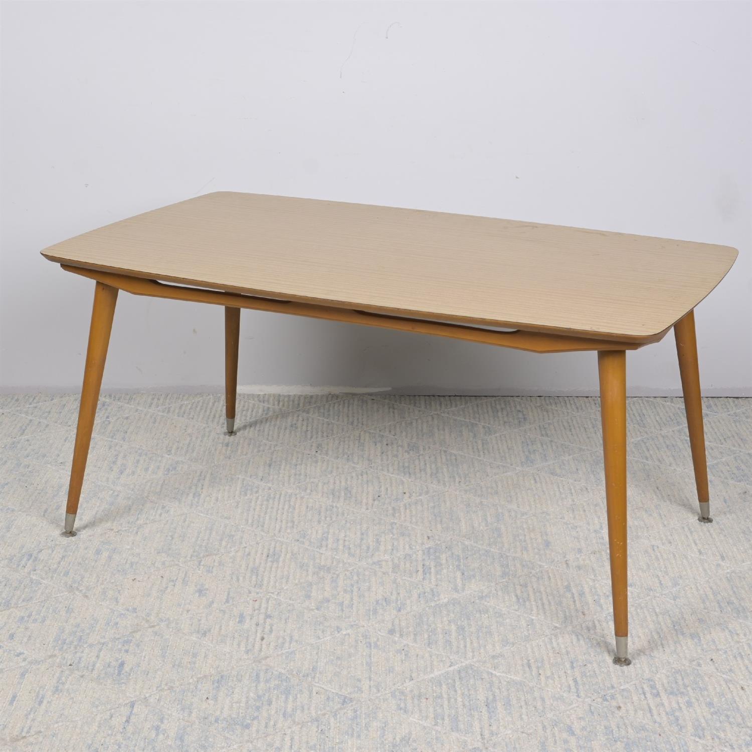 A MID-CENTURY LAMINEX TOPPED BULLET LEG DINING TABLE (73H X 151W X 91D M) (LEONARD JOEL DELIVERY: X-LARGE)