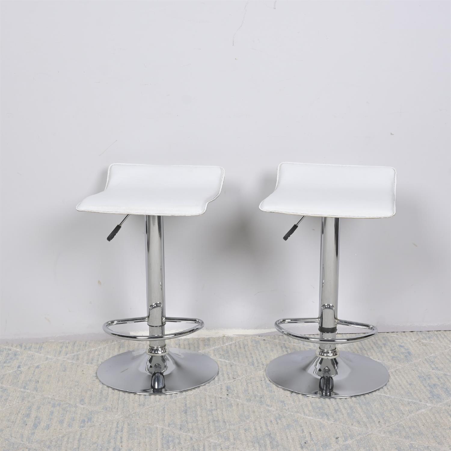 A PAIR OF LEATHER AND CHROME STOOLS (A/F) (64H X 39W X 42D CM) (LEONARD JOEL DELIVERY: LARGE)