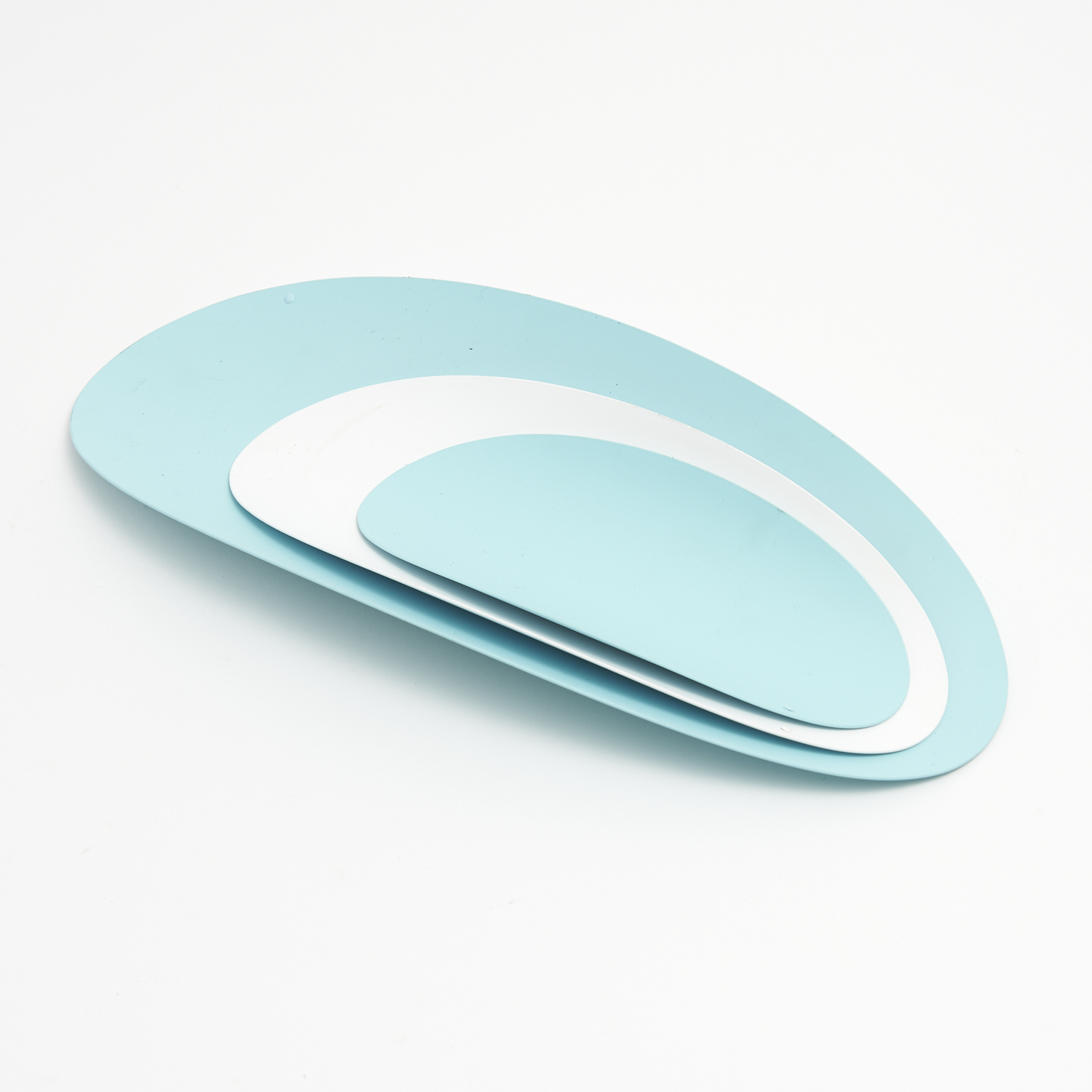 A SET OF THREE ITALIAN ELLIPSE BOWLS BY ALESSI W.40CM (LONGEST), LEONARD JOEL DELIVERY SIZE: MEDIUM