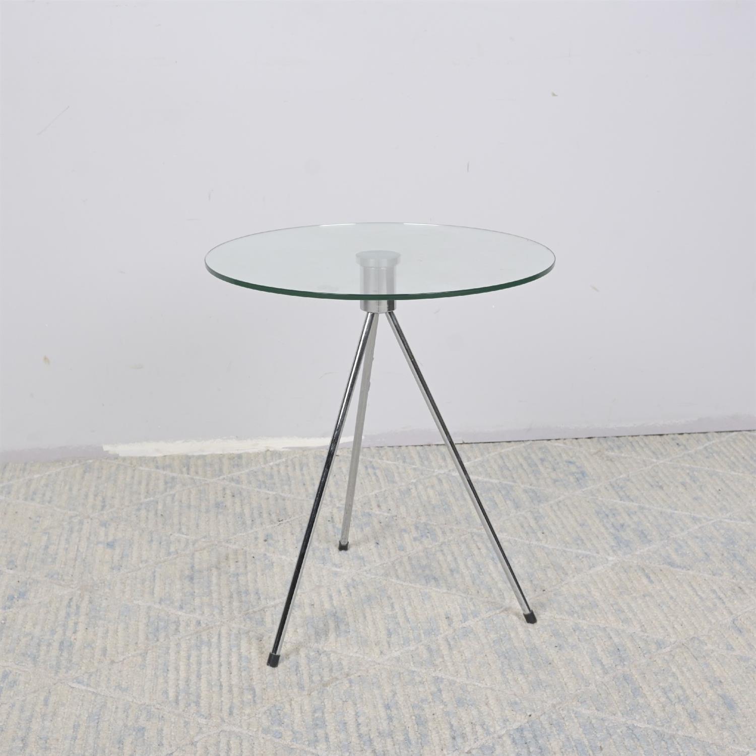 A CONTEMPORARY CHROME AND GLASS SIDE TABLE (56H X 50DIA CM) (LEONARD JOEL DELIVERY: LARGE)