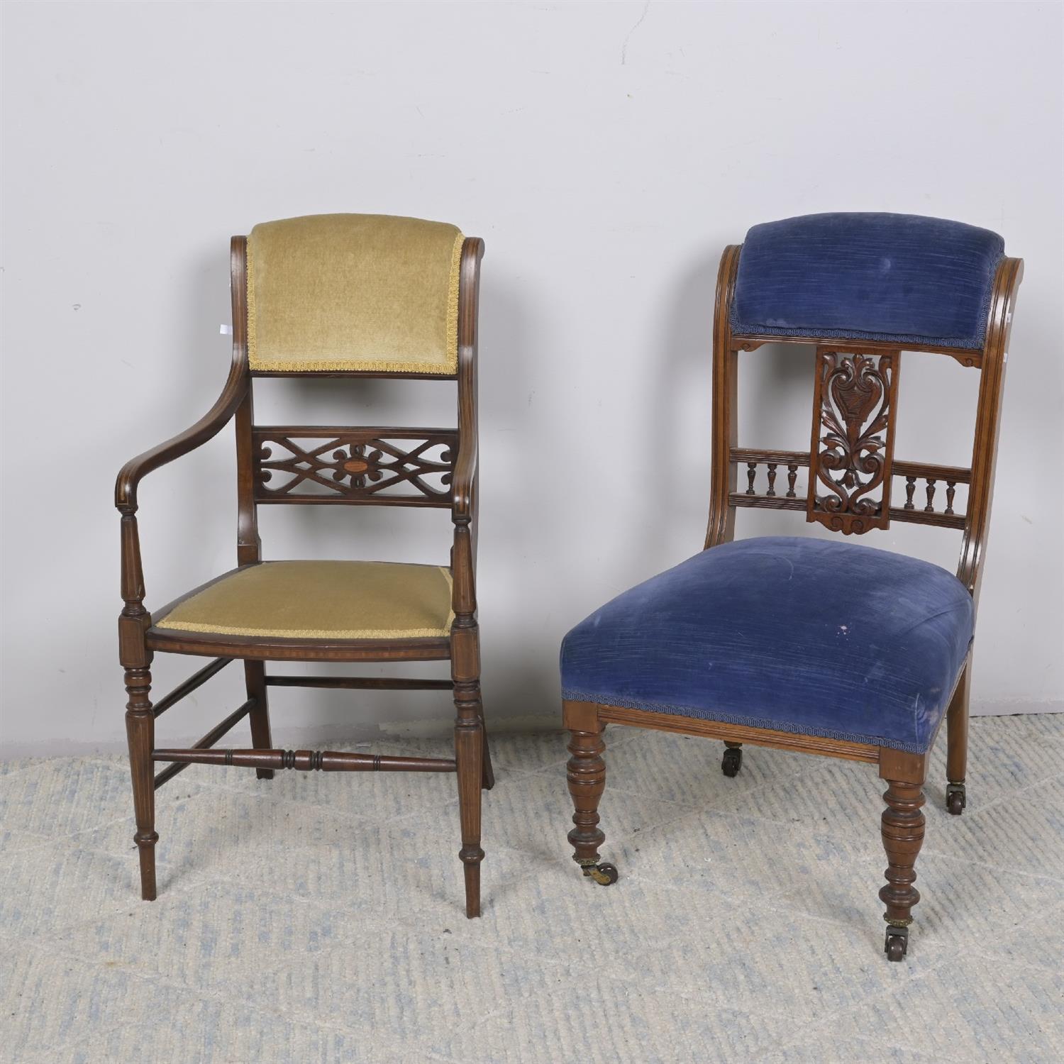 TWO VICTORIAN SIDE CHAIRS (82H X 48W X 58D CM) (LEONARD JOEL DELIVERY: LARGE)