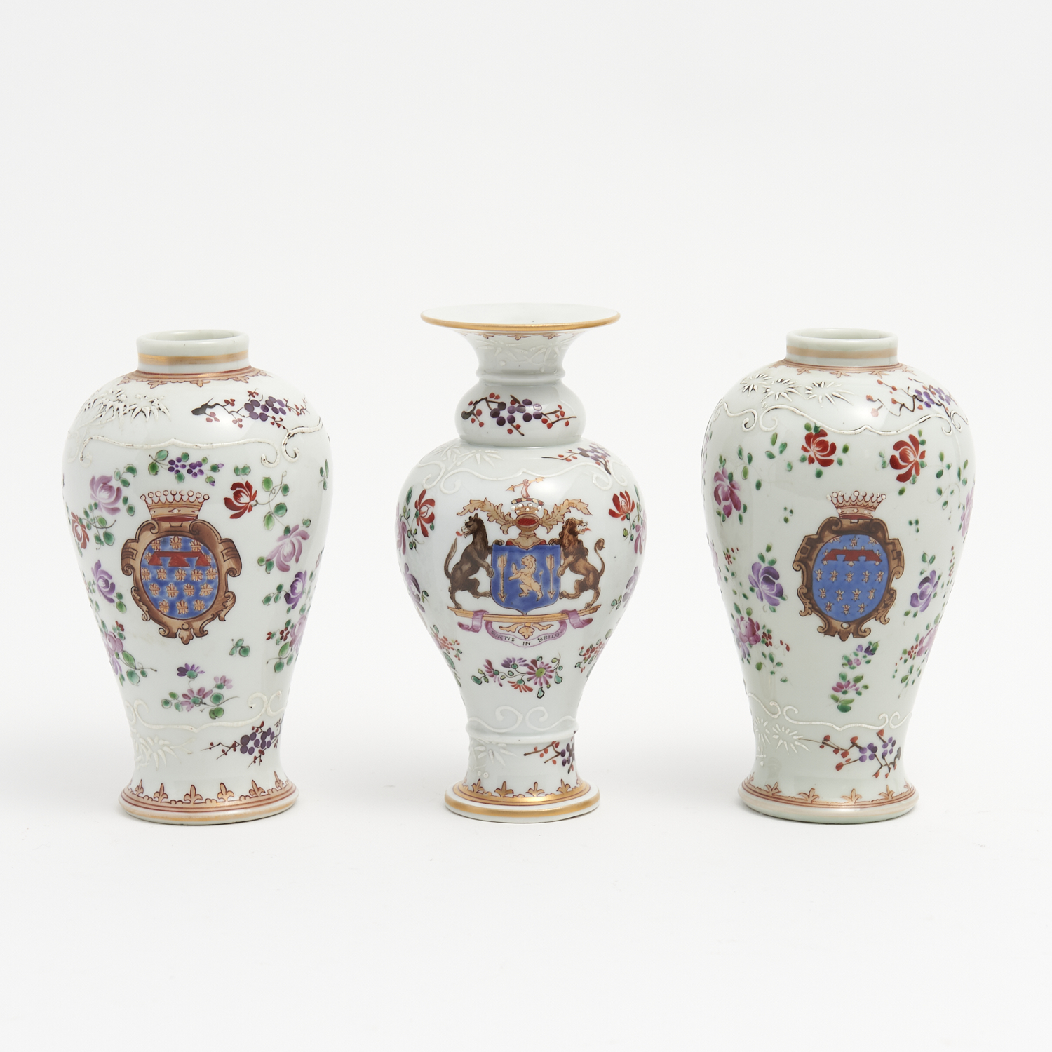 THREE EDME SAMPSON PORCELAIN VASES WITH CHINESE ARMORIAL CRESTS H.15.5CM, LEONARD JOEL DELIVERY SIZE: MEDIUM