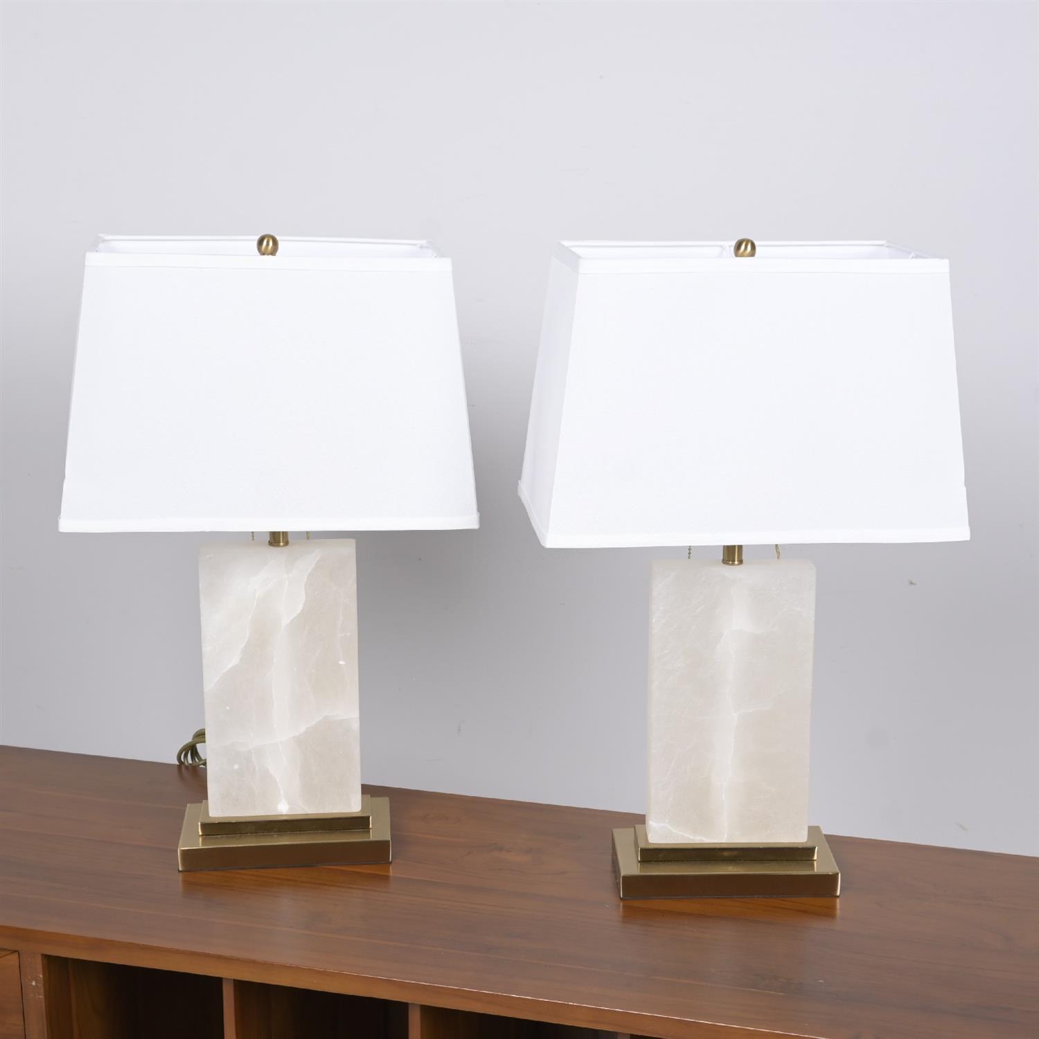 A PAIR OF MARBLE & BRASS TABLE LAMPS (64H X 41W X 24D CM) (LEONARD JOEL DELIVERY: LARGE)