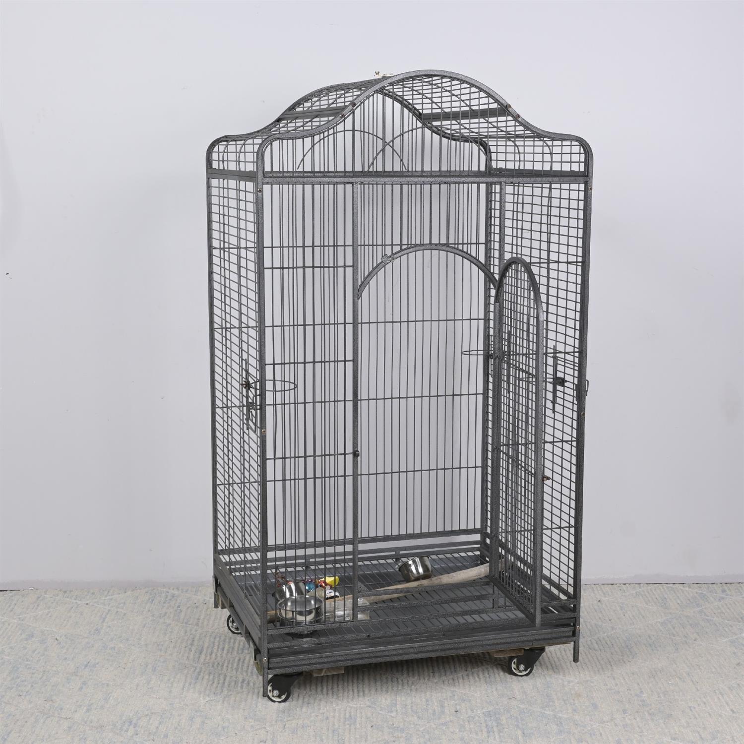 A LARGE METAL BIRDCAGE (172H X 92W X 76D CM) (THIS HEAVY ITEM MUST BE REMOVED BY CARRIERS AT THE CUSTOMER'S EXPENSE. LEONARD JOEL STAFF CANNOT ASSIST CARRYING THIS ITEM)